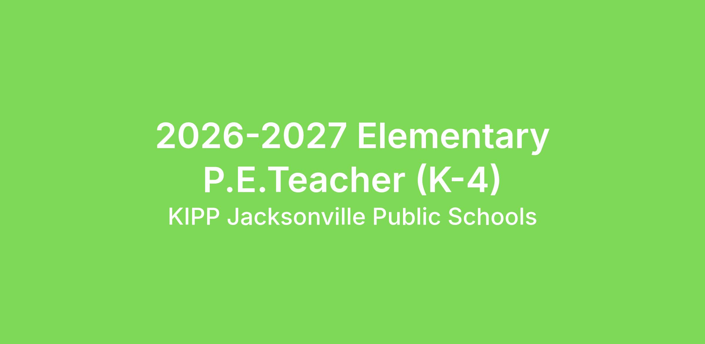 KIPP Jacksonville Public Schools seeks a passionate physical education teacher for our elementary grade levels. The P.E./ Health teacher will lead daily P.E. instruction across multiple grade levels. P.E. instruction in kindergarten through fourth grade will supplement other core academic areas.