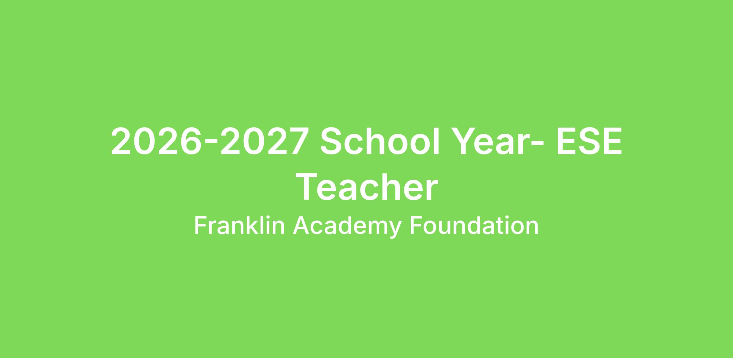Franklin Academy is a Drug-Free Workplace. All candidates are required to pass a mandatory drug screening and background check (https://info.flclearinghouse.com).
