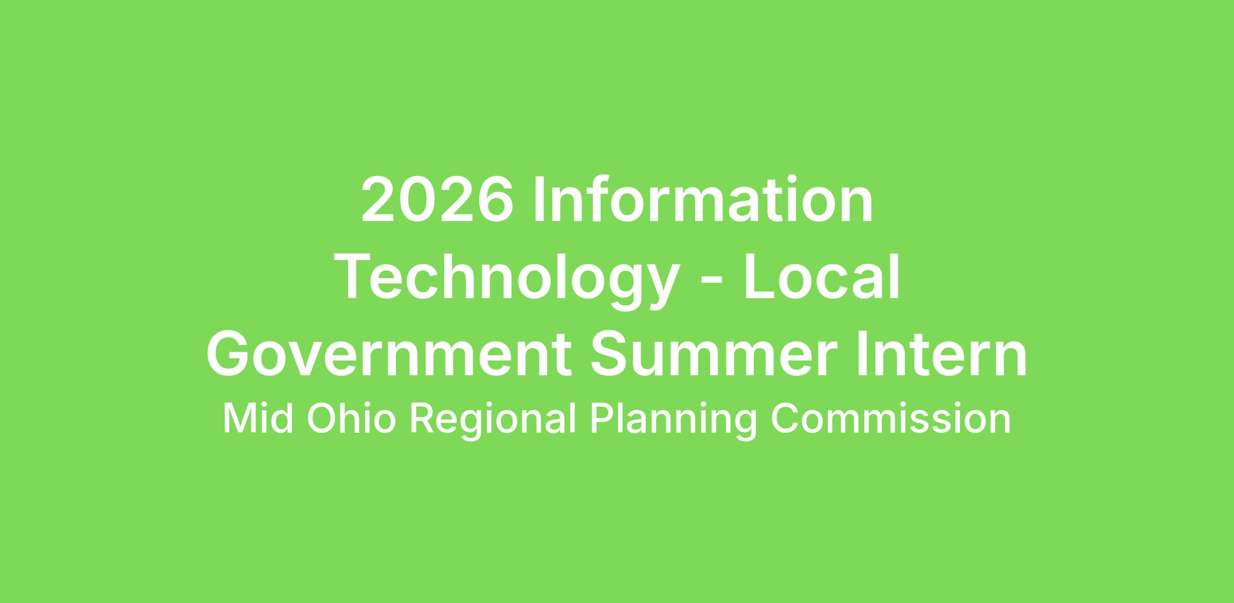 2026 Information Technology - Local Government Summer Intern