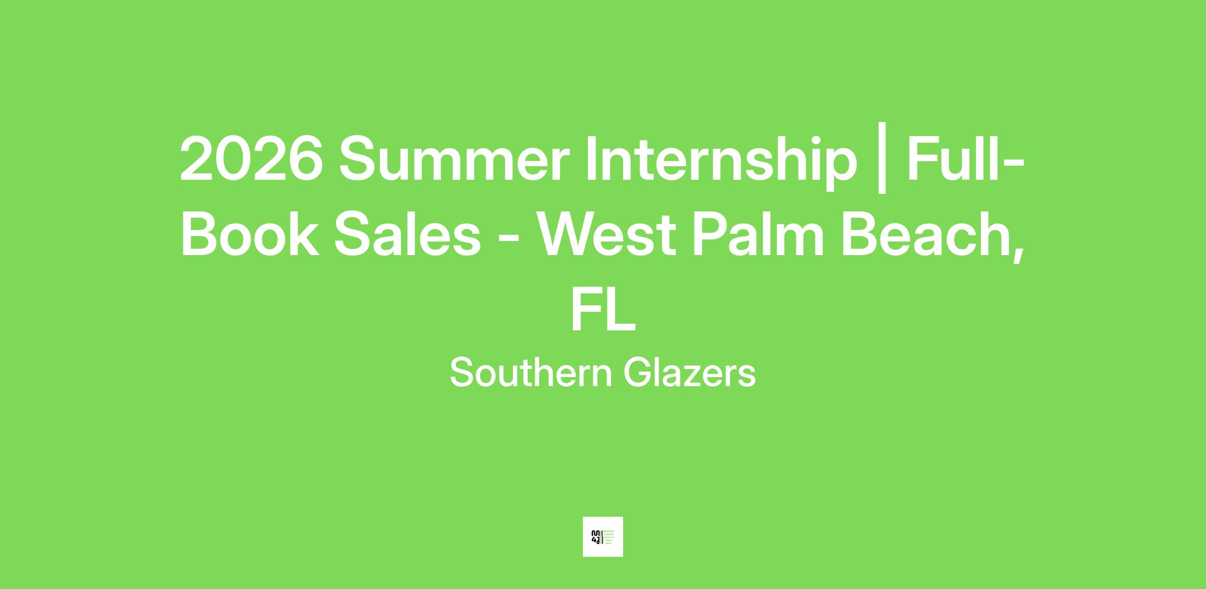 2026 Summer Internship | Full-Book Sales - West Palm Beach, FL