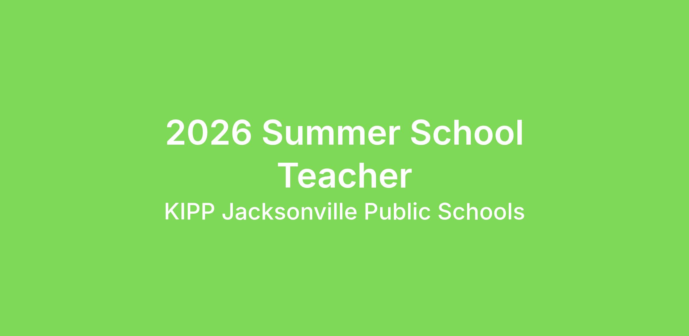 KIPP Jacksonville Public Schools seeks teachers for our summer school classrooms for Summer 2025. Interested candidates don’t have to be current KIPP Jacksonville employees to apply for this position, but they should already have certificated fingerprints on file with Duval County.