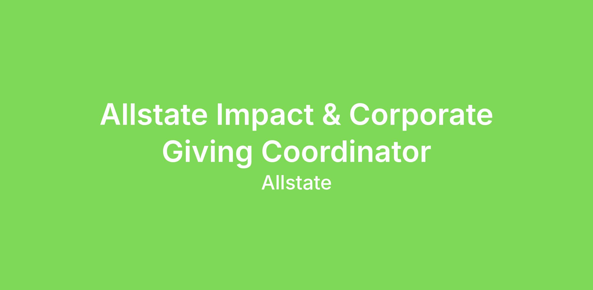 The Allstate Foundation and Social Impact Team is seeking an Allstate Impact & Corporate Giving Coordinator to provide administrative and operational support for our Allstate Impact & Engagement (AIE) and Corporate Giving work.