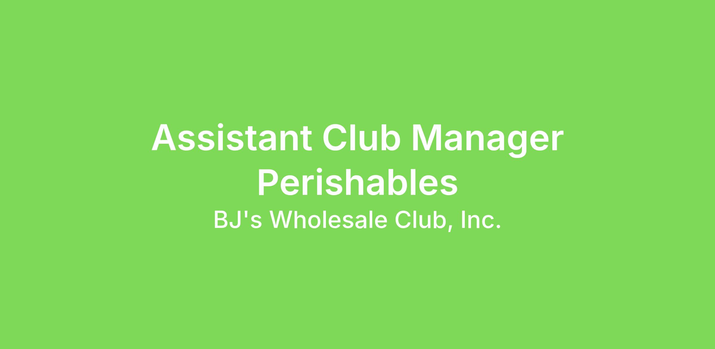 A World-Class Team BJ’s Wholesale Club is powered by more than 30,000 team members who make a real impact every day. Whether you're stocking shelves, solving problems or shaping strategy, your work helps families save on what matters most. We’re a team built on purpose and opportunity. Join us and be part of something meaningful. Why You’ll Love Working at BJ’s At BJ’s Wholesale Club, our team members are at the heart of everything we do. That’s why we offer a comprehensive benefits package designed to support your health, well-being and future – both on and off the job. When you grow, we grow. Here’s just some of what you can look forward to: Weekly Pay: Get paid every week so that you can manage your money on your terms. Free BJ’s Memberships: Enjoy a complimentary The Club Card Membership, plus a free Supplemental Membership for someone in your household.* Generous Paid Time Off: Take the time you need with vacation, personal, sick days, holidays, bereavement, and jury duty leave.* Flexible and Affordable Health Benefits: Choose from three medical plans, and access optional dental, vision, Health Savings Account (HSA), and flexible spending account options to fit your lifestyle.* 401(k) Retirement Savings Plan: Build your financial future with a company match (available to team members 18 and older).* Employee Stock Purchase Plan: Accumulate funds through after-tax payroll deductions that can be used to purchase shares of BJ’s common stock at a 15% discount.* *Eligibility requirements vary by position. Job Summary Working closely with the Club Manager, the Assistant Club Manager in Training (AMIT) is responsible for providing leadership and direction within the club and driving club performance, particularly for the departments that they directly manage. The AMIT role prepares individuals to assume one of three Assistant Club Manager positions: Merchandising, Perishables, or Member Experience. The trainee will receive focused development and experience aligned to their designated track and will ultimately oversee the corresponding departments. Ensures consistent execution of policies and procedures, a positive member service experience, Grand Opening Look Daily (GOLD) standard club conditions, and provides overall leadership and direction within the club. A key function of the AMIT role is the ability to develop talent, display leadership, and deliver results consistently. The AMIT leads audit compliance efforts, drives collaboration with Business Partners (BPs), and oversees onboarding, certification, and training to ensure food safety and operational excellence. This role also serves as Manager on Duty (MOD) for the club as needed, taking full responsibility for club operations, team leadership, and Member engagement during assigned shifts. A valid ServSafe Food Safety Certification is required and must be maintained in good standing. May require yearly certification for a forklift license. In Florida, this role must obtain a qualifier certification through the Department of Agriculture and Consumer Services for retail propane oversight. The qualifier certification exam must be taken online with video. BJ’s covers any applicable cost associated and training. Leadership Responsibilities Know the business: Exhibit strong business acumen through strategic thinking and data-driven decision-making. Lead through change: Model leadership competencies and act as a champion for growth. Communicate effectively: Provide teams with the information, direction, and support needed to succeed. Build high-performing teams: Foster collaboration, provide clear direction, and hold team members accountable. Deliver results: Set clear expectations, follow up consistently, and drive execution. Develops Talent & Team: Consistently fosters a culture of growth by actively developing team members through collaboration, coaching, and empowerment. Encourages continuous learning and creates opportunities for others to succeed. Display Leadership: Demonstrates strong leadership by fostering trust, promoting open communication, and resolving conflicts constructively. Builds inclusive relationships that support a collaborative and respectful team environment. Team Member Engagement Teach, coach, & lead: Support team development through training, feedback, and on-the-job coaching. Ensuring learning takes place in the flow of work. Drive values-based culture: Promote strategic thinking, ethical decision-making, and inclusion. Create a safe and collaborative environment: Foster open communication and team trust. Recognize and retain top talent: Celebrate achievements and focus on career growth. Member Experience Guarantee service excellence: Ensure GOLD Member Standards are met: Greet, Anticipate, Appreciate (GAA); Fast, Friendly, Full, Fresh, Clean. Monitor engagement levels: Observe Member engagement and department execution to ensure premium shopping experience. Resolve concerns: Support team in resolving Member issues and delivering satisfaction. Consistently Run Great Clubs with Great Standards Maintain Club Standards: Consistently Delivering GOLD Standards in your club. Raising The Bar: Ensuring club is at plan or better for all Bottom Quartile core KPIs relevant to role. Achieve Financial Performance Cost Discipline: Meet or Exceed Labor and Supply Plans for your club. Drive Performance and Profitability: Using reporting to identify trends and areas of opportunity. Understanding The Business: Acquire a deep knowledge of key metrics and reporting for total club and department performance. Major Tasks, Responsibilities, and Key Accountabilities Provide Strategic Department Leadership: Partner with the Club Manager and other leaders to oversee daily operations across assigned departments (Merchandising, Perishables, or Member Experience), emphasizing business acumen, accountability, team engagement, and flawless execution of club standards. Recruit, Hire, and Onboard Team Members: Manage the 