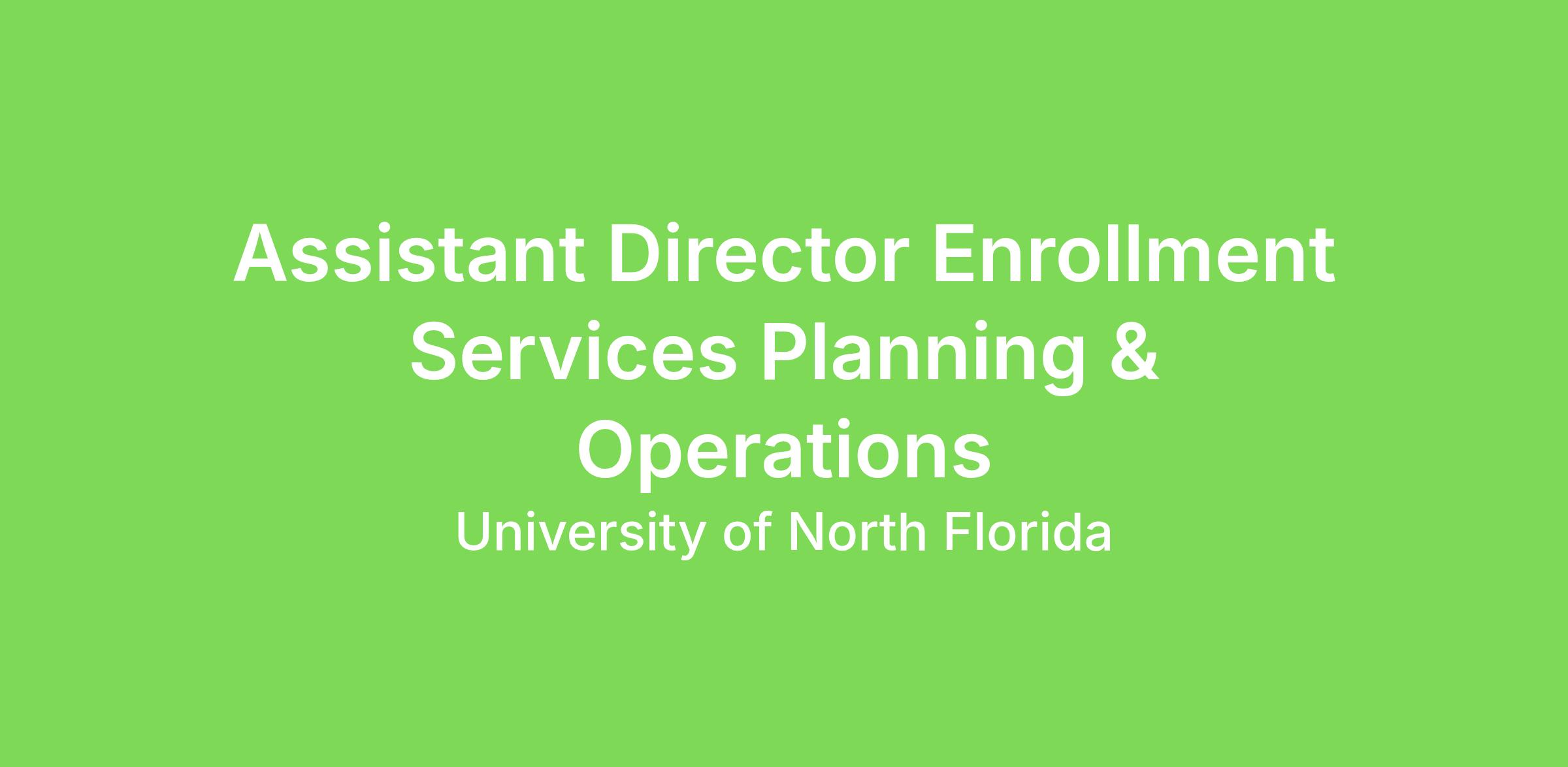 The Assistant Director supports the design, development, and implementation of departmental processes and operational initiatives. This role provides day-to-day operational support, reporting and analytics expertise, and coordination across Enrollment Services functions. The Assistant Director collaborates closely with Admissions, Financial Aid, the Welcome Center, One-Stop, and Records & Registration to drive operational improvement, data-informed decision making, and effective use of technology.