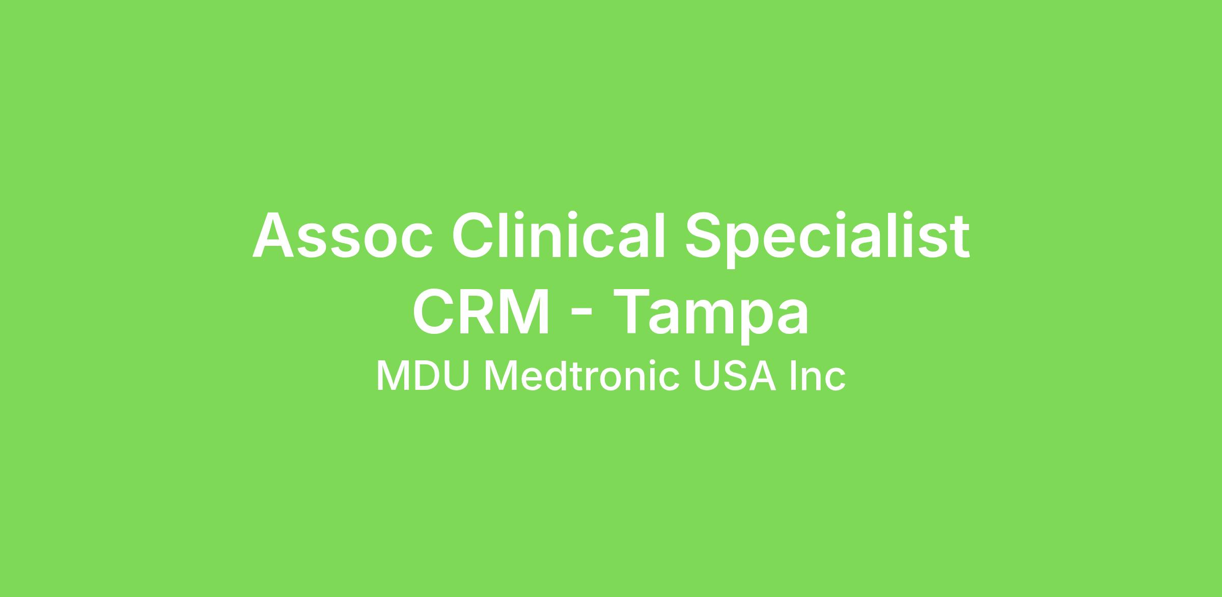 Assoc Clinical Specialist CRM - Tampa