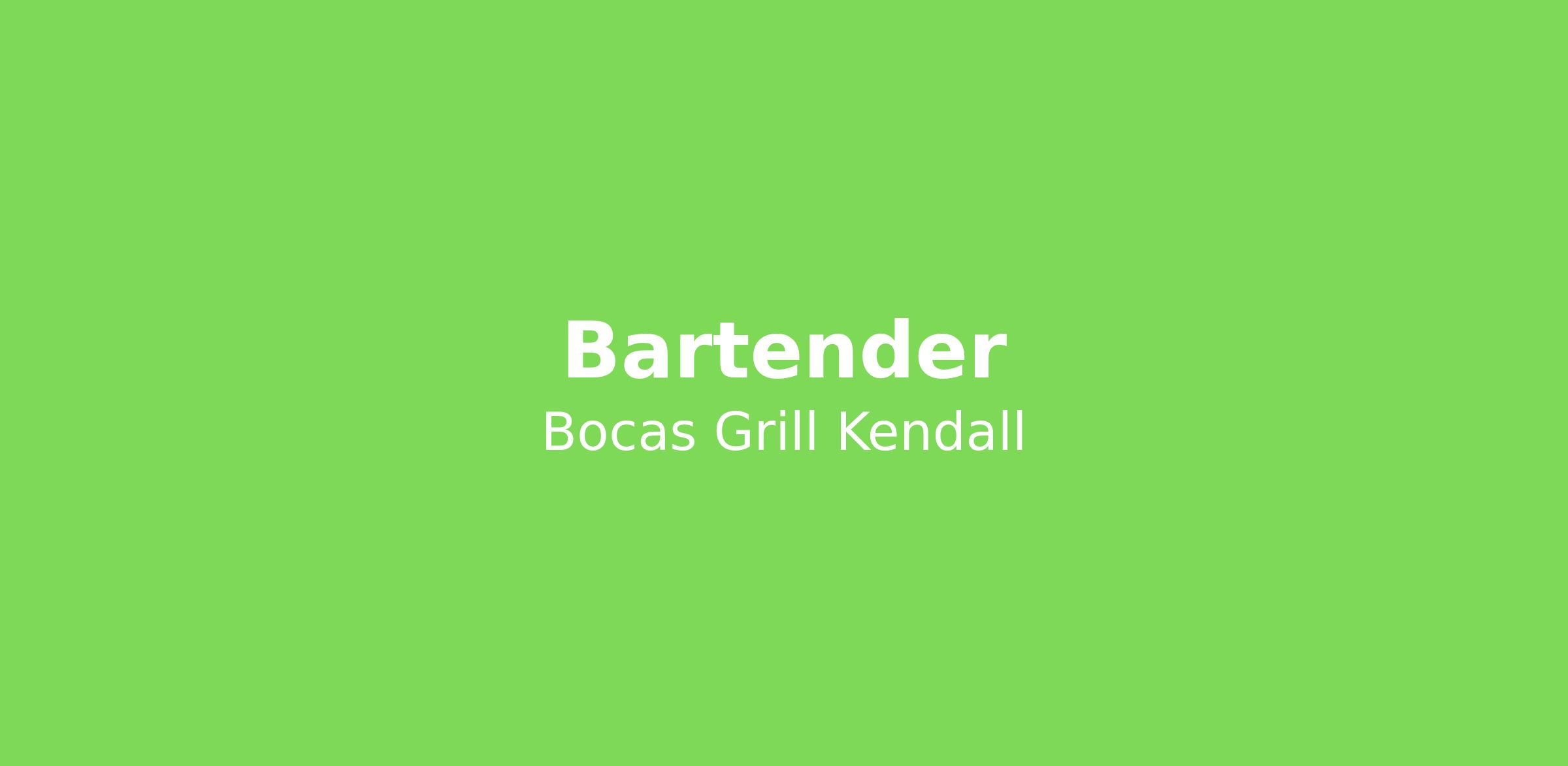 Bocas Grill Kendall en Miami, FL está buscando un bartender para unirse a nuestro 26 persona equipo fuerte . Estamos ubicados en 12042 Sw 88 Th St . Nuestro candidato ideal es un auto arranque , puntual y comprometido .