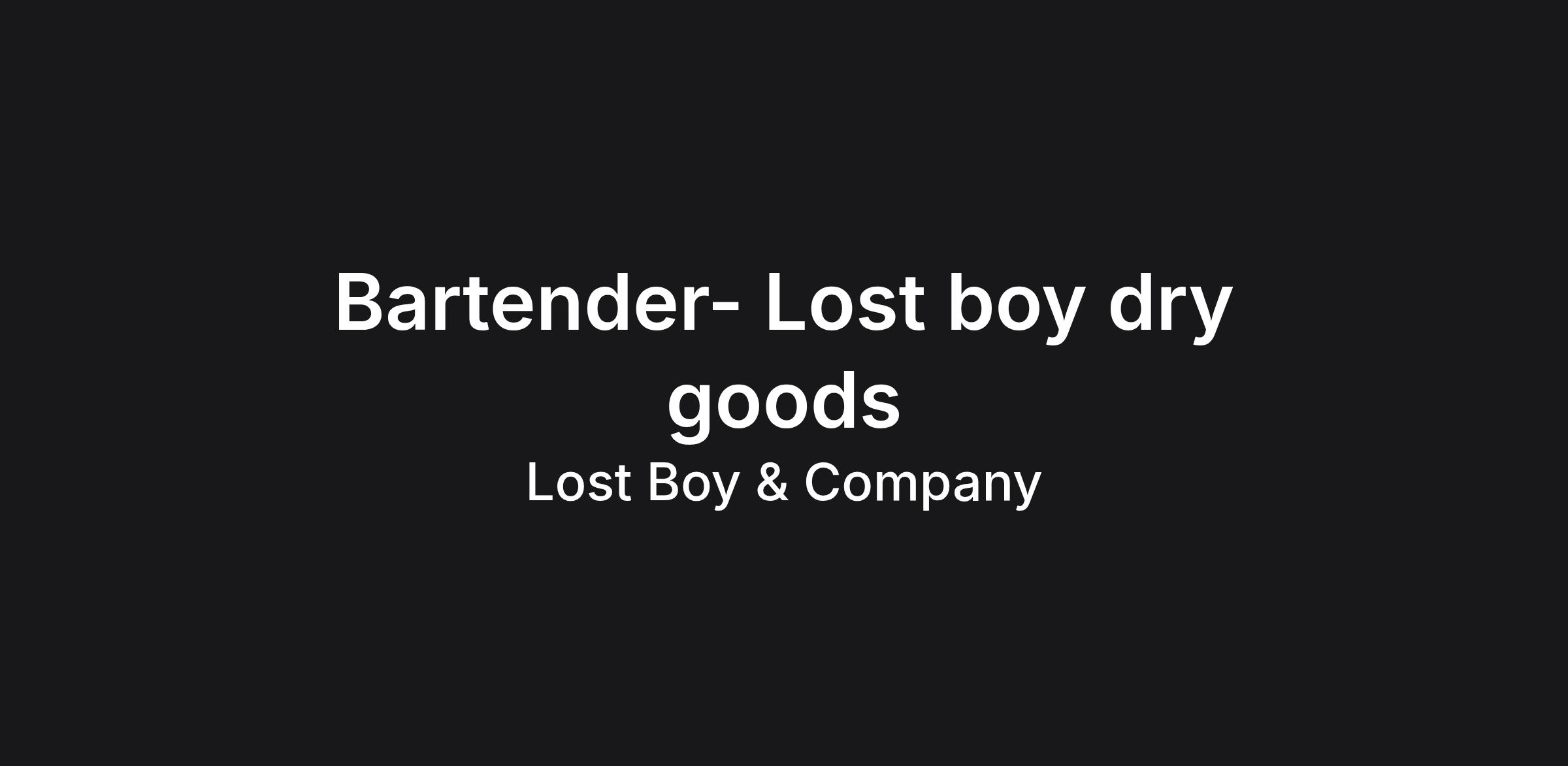 At Lost Boy Dry Goods, the bar isn’t just a station — it’s the heartbeat of the room. You control the energy. You turn first-time guests into regulars and regulars into fans. You know when to keep it moving and when to slow it down for the perfect moment.