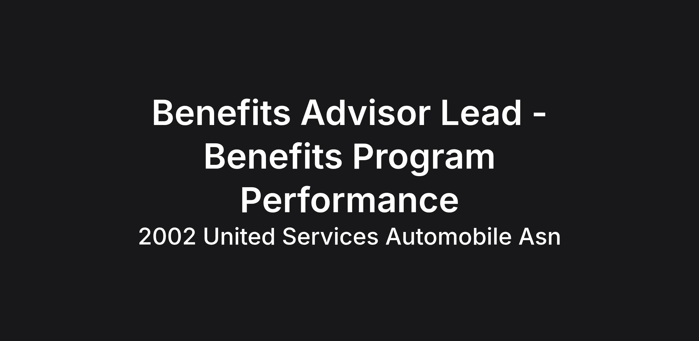Benefits: At USAA our employees enjoy best-in-class benefits to support their physical, financial, and emotional wellness. These benefits include comprehensive medical, dental and vision plans, 401(k), pension, life insurance, parental benefits, adoption assistance, paid time off program with paid holidays plus 16 paid volunteer hours, and various wellness programs. Additionally, our career path planning and continuing education assists employees with their professional goals.