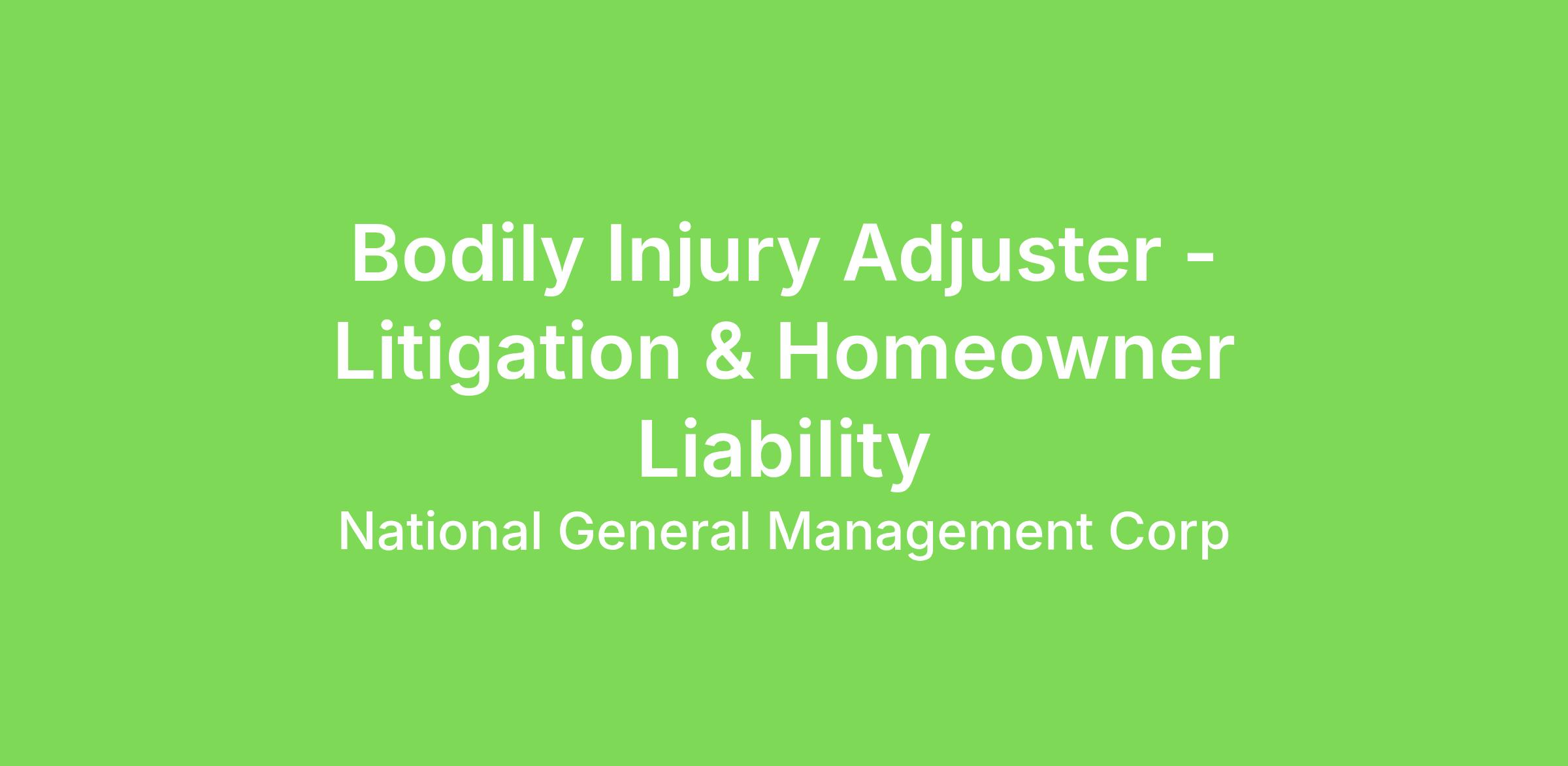 Bodily Injury Adjuster - Litigation & Homeowner Liability