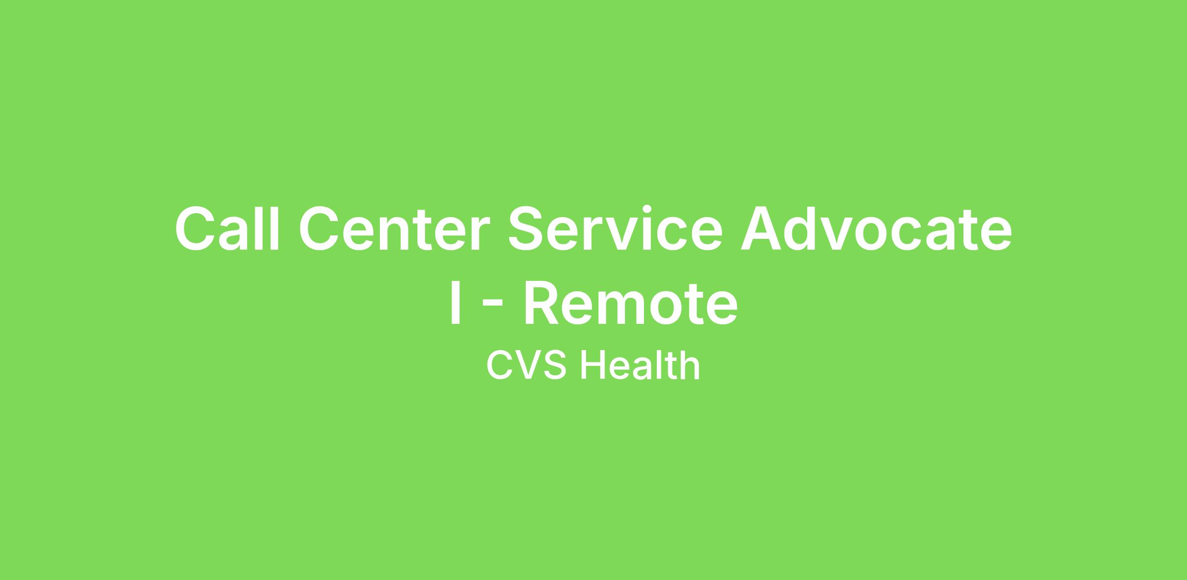 Title: Contact Center Service Advocate I