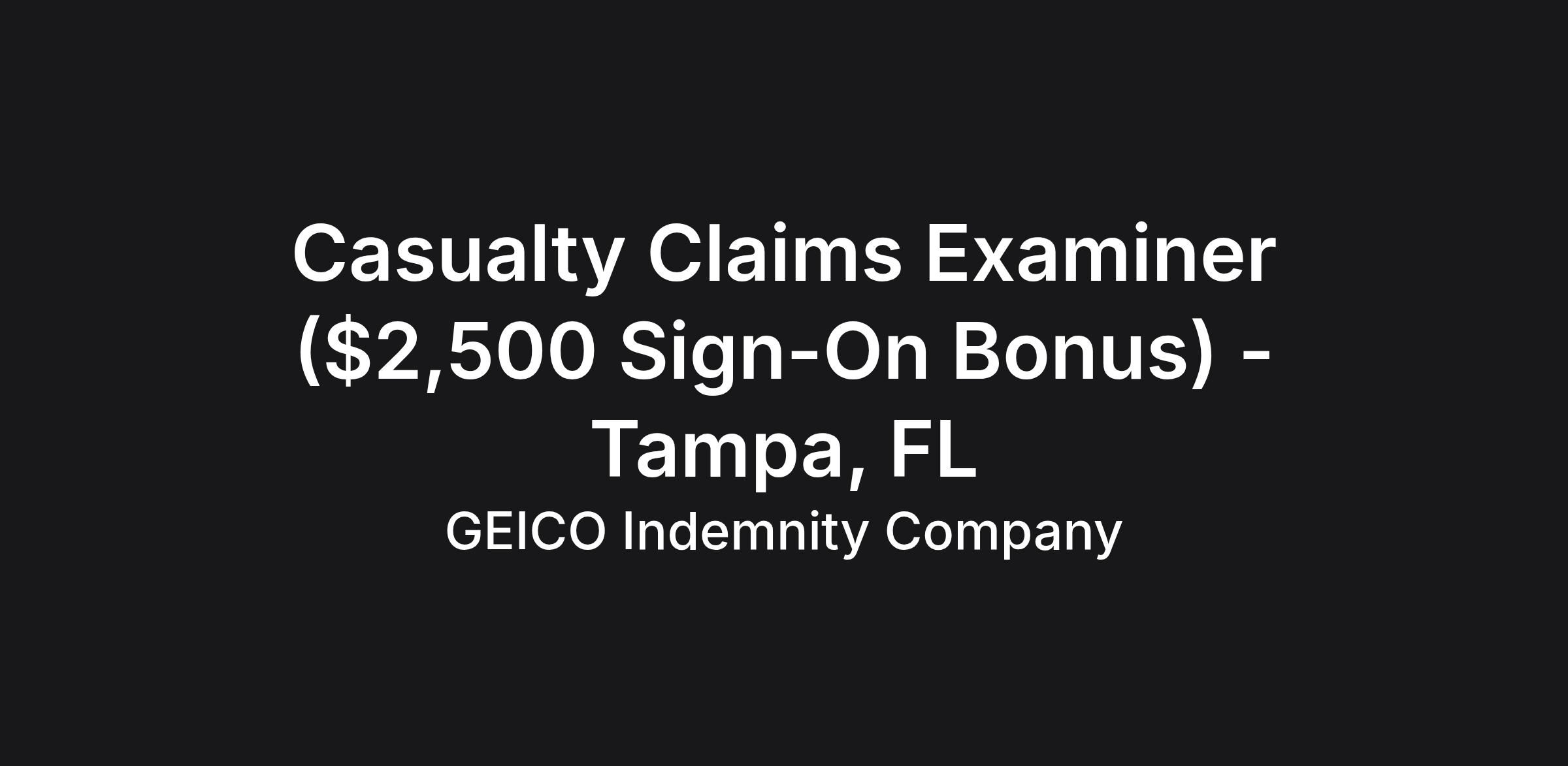 Casualty Claims Examiner ($2,500 Sign-On Bonus) - Tampa, FL