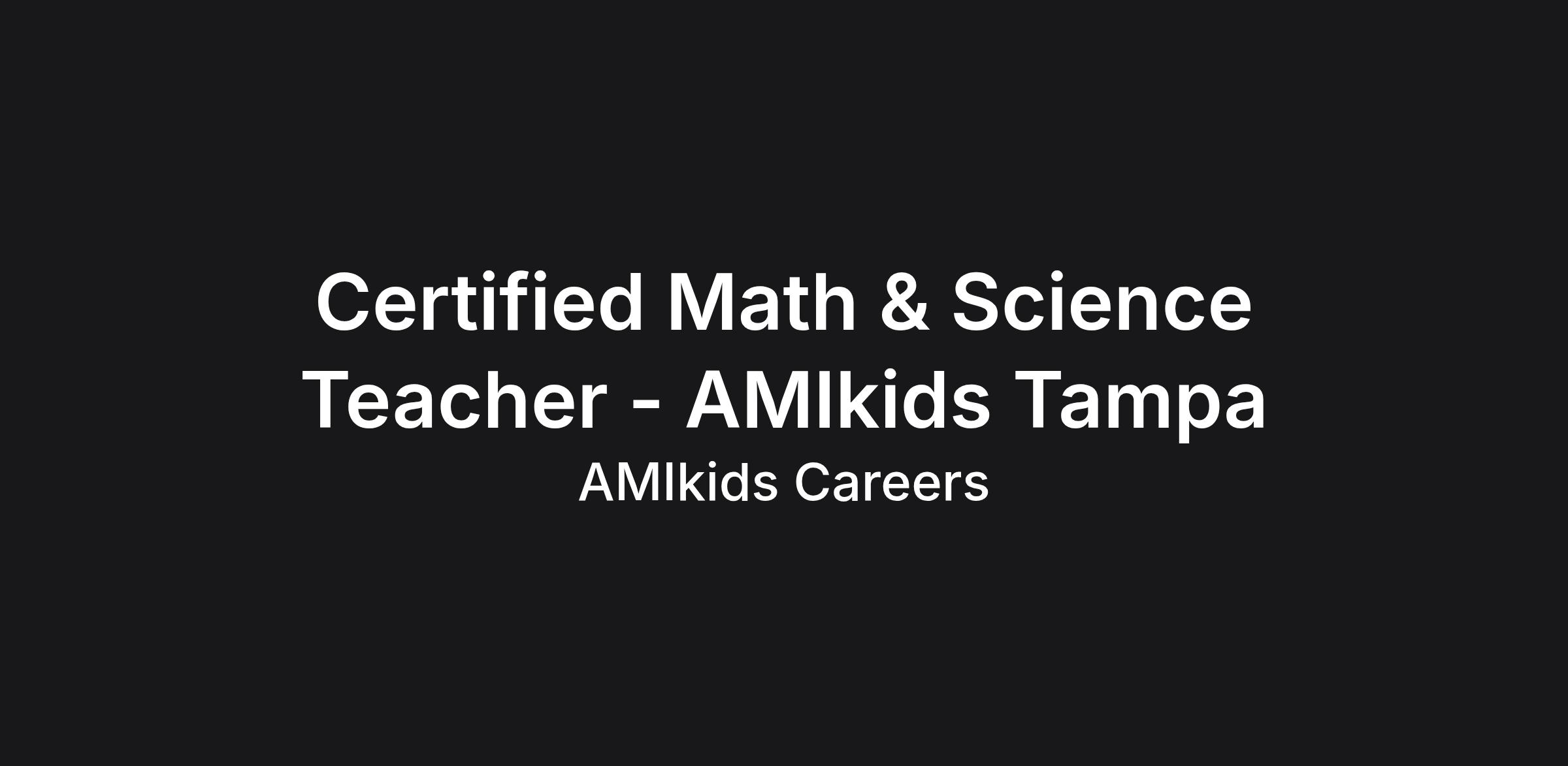 AMIkids Tampa is actively hiring for a Certified Teacher, with Math and/or Science certification.