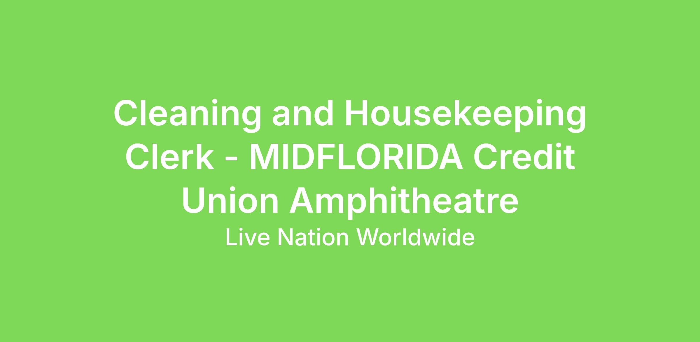 MIDFLORIDA Credit Union Amphitheatre is seeking a Cleaning and Housekeeping Clerk to keep our venues show-ready and create an incredible fan experience. This position is responsible for performing highly diversified duties to install, troubleshoot, repair and maintain equipment according to safety, predictive and productive maintenance systems and processes to support the achievement of the venue's business goals and objectives.