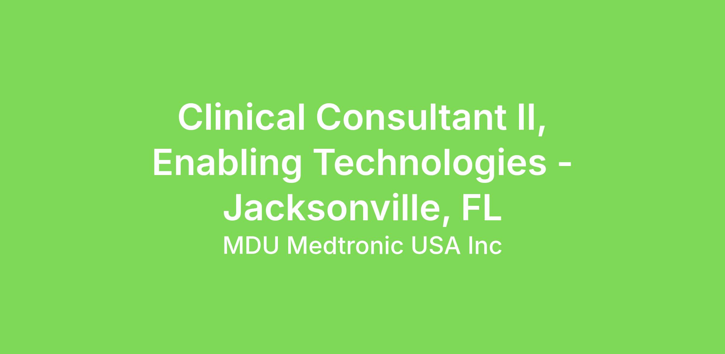 Clinical Consultant II, Enabling Technologies - Jacksonville, FL