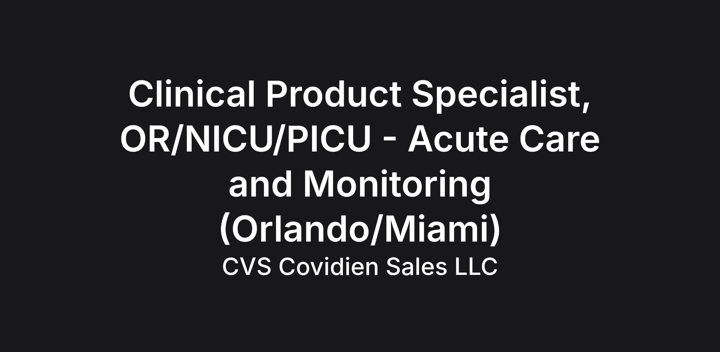 Clinical Product Specialist, OR/NICU/PICU - Acute Care and Monitoring (Orlando/Miami)