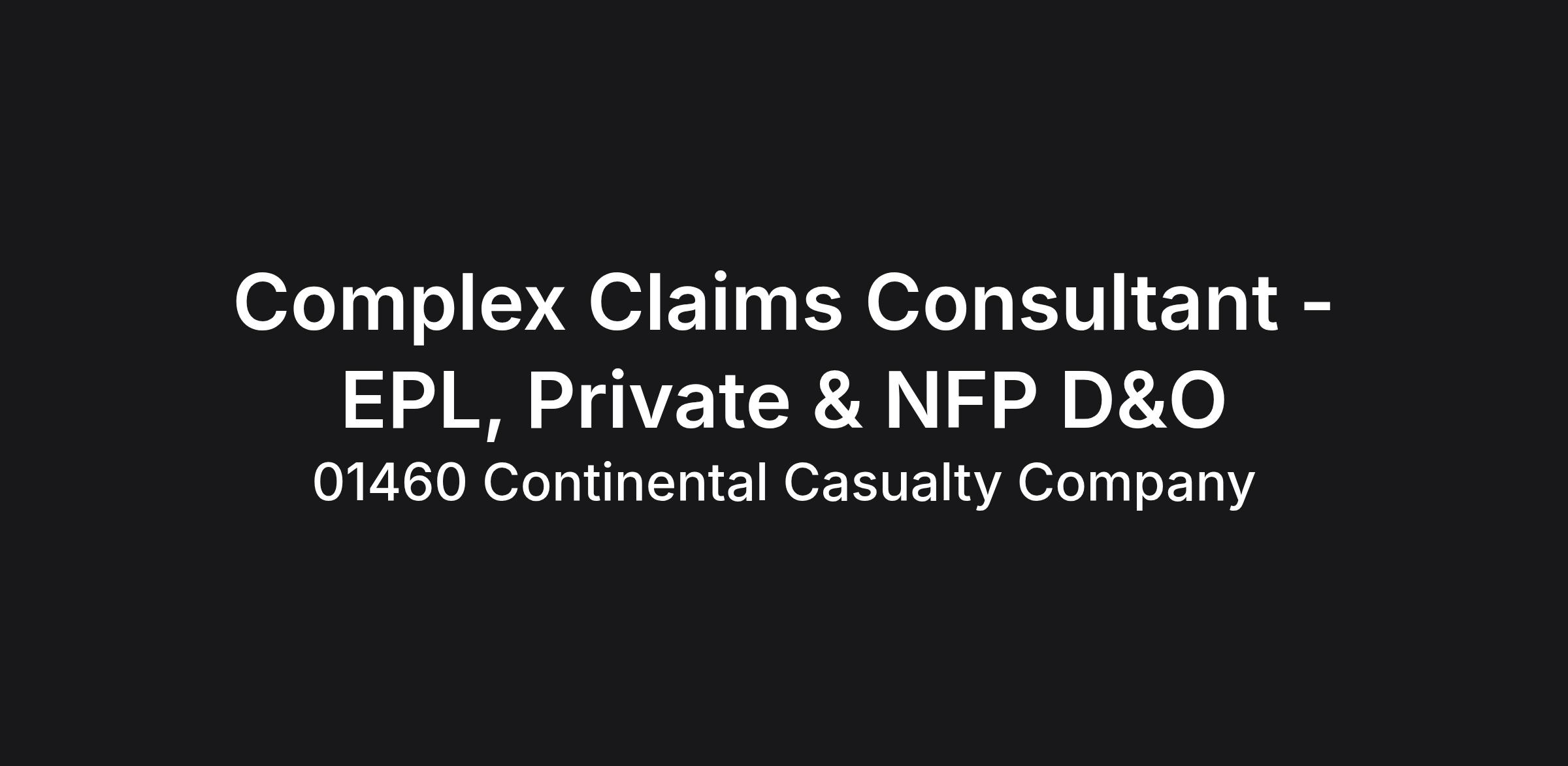 CNA is one of the premier providers of professional liability insurance. CNA Financial Lines has an opening for a Complex Claims Consultant handling Private D&O, Fiduciary and Employment Practice Liability (EPL) Claims. This individual will work with insureds, attorneys and brokers regarding the handling and/or disposition of mid to high severity claims.