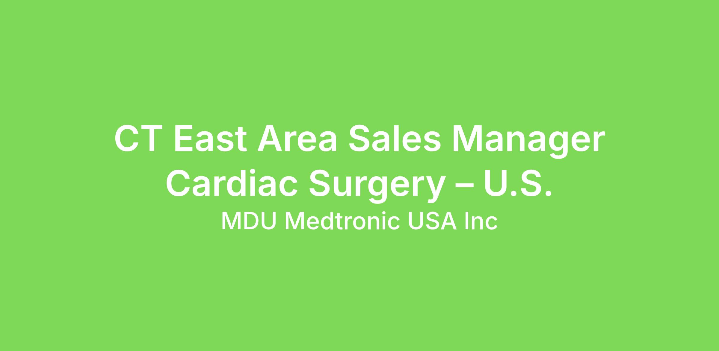 CT East Area Sales Manager Cardiac Surgery – U.S.