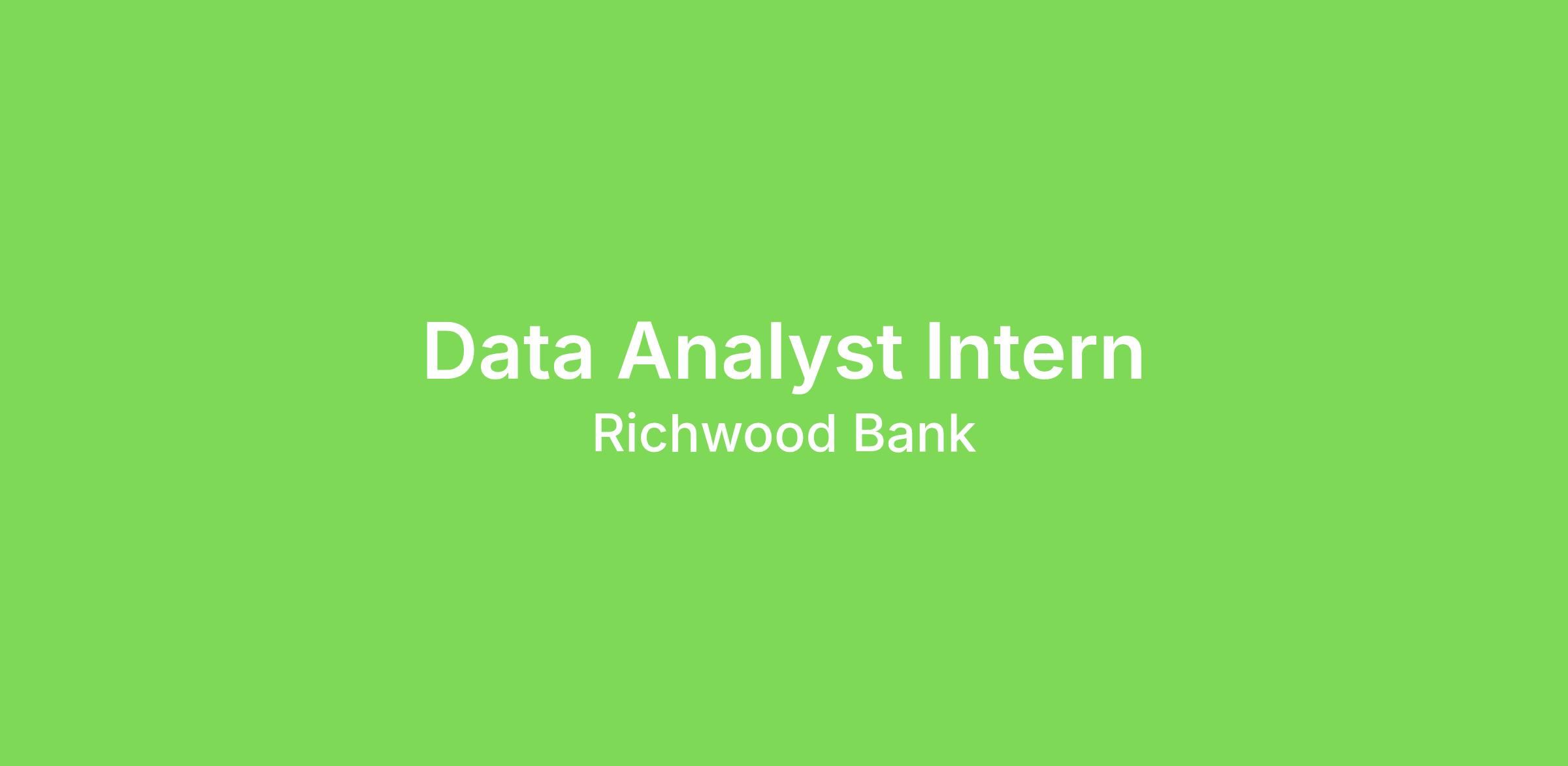 The Data Analyst Intern supports Richwood Bank's data driven decision making by assisting with the collection, validation, analysis, and visualization of financial, operational, and customer data. This role works closely with the Data, Finance, Lending, and Operations teams to help transform raw information into meaningful insights. Interns will also participate in team meetings and complete a final project summarizing their learning and contributions, consistent with the bank's internship standards.‑driven decision‑making by assisting with the collection, validation, analysis, and visualization of financial, operational, and customer data. This role works closely with the Data, Finance, Lending, and Operations teams to help transform raw information into meaningful insights. Interns will also participate in team meetings and complete a final project summarizing their learning and contributions, consistent with the bank's internship standards.
