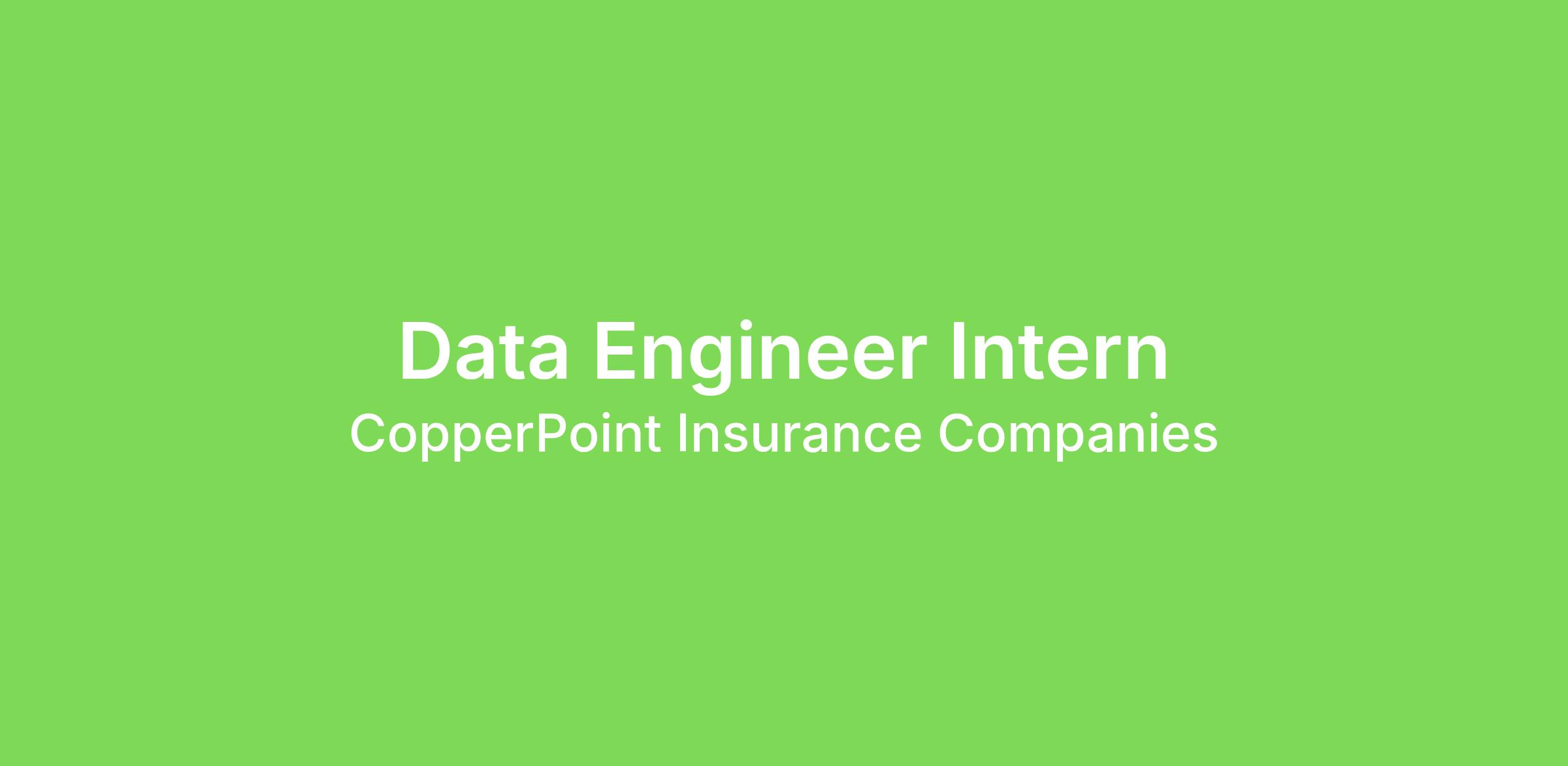CopperPoint has an exciting opportunity for a Data Engineering Intern in Seattle, WA or Phoenix, AZ. This 12-week paid program offers hands-on corporate experience, meaningful exposure to day-to-day operations, and valuable preparation for a future career at CopperPoint.