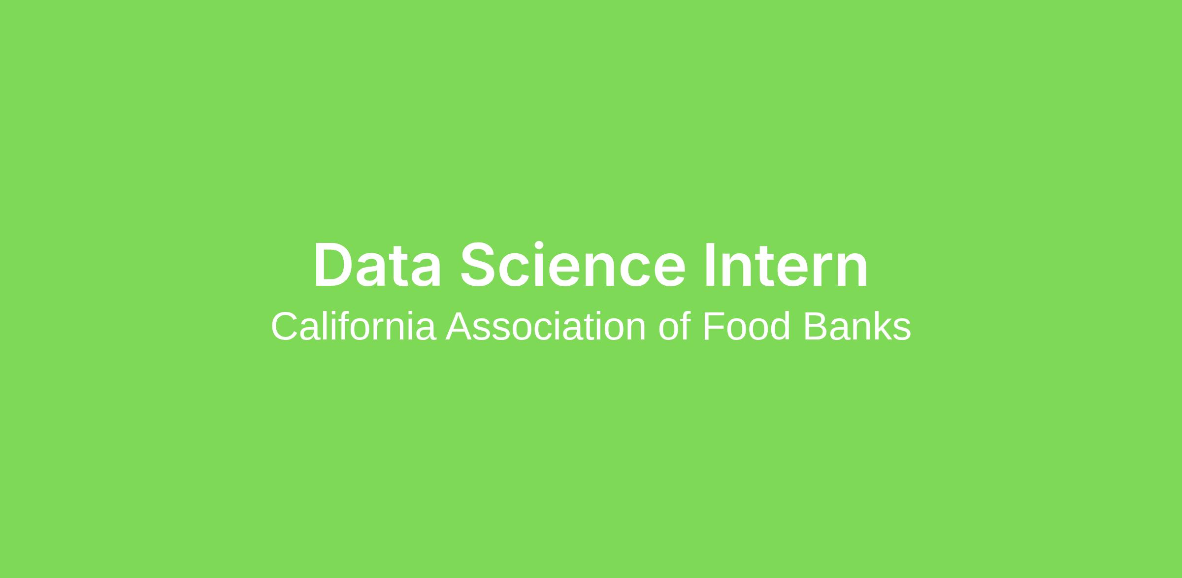 We are seeking one part-time (~20 hours/week) graduate student Data Science Intern to support CAFB’s Research & Strategic Initiatives Department. This position will support the department’s efforts in developing and updating public-facing and internal dashboards visualizing key data such as food bank operation metrics and population health indicators. For an example of our public-facing dashboards, see our Economic Indicators Dashboard here.
