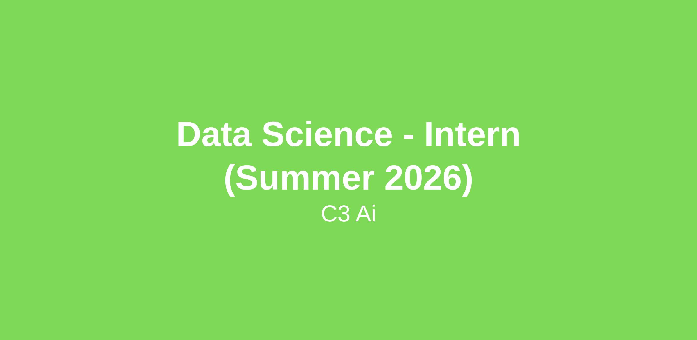 C3 AI is searching for brilliant and ambitious Data Scientist Interns to join our Summer 2026 cohort. This isn't just about running models; you'll be on the front lines, working with iconic global brands on their digital transformation. You will tackle massive, complex datasets to build the next generation of enterprise AI applications that deliver real-world results.