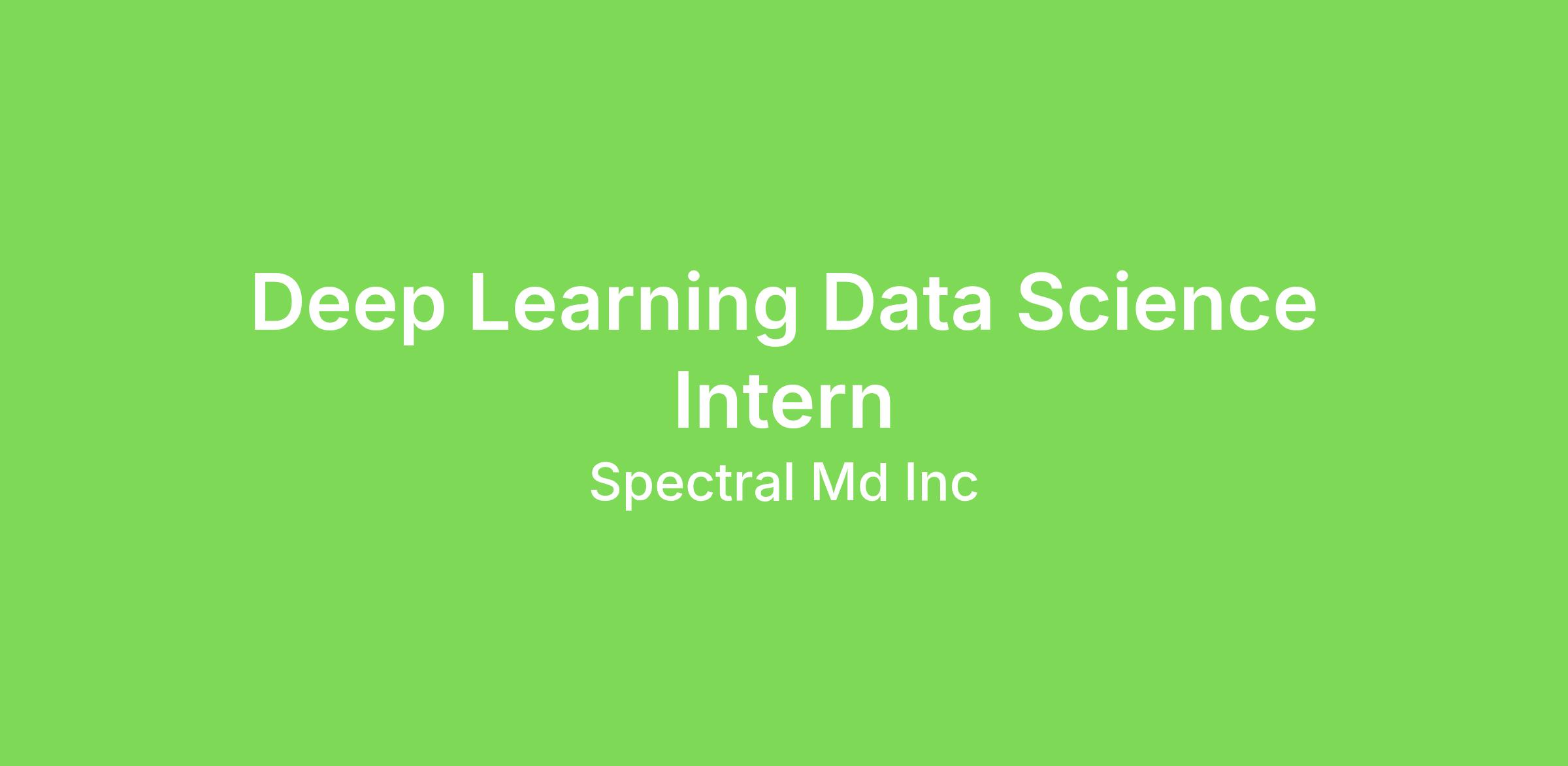 The Deep Learning Data Scientist Intern at Spectral AI will work closely with Deep Learning Data Scientists on topics related to research and development of traditional machine learning and deep learning algorithms that will impact future Spectral AI products focusing on medical imaging device data.