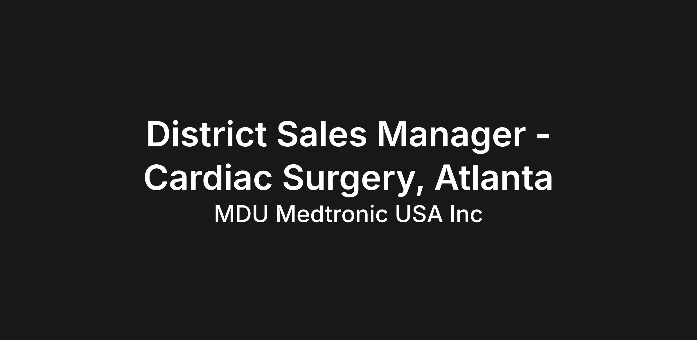 District Sales Manager - Cardiac Surgery, Atlanta