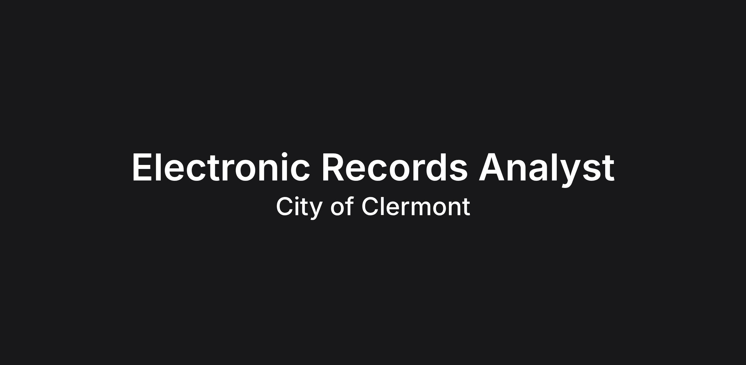 The Electronic Records Analyst is responsible for the administration, maintenance, and compliance of the City’s electronic records management systems, with primary responsibility for the records repository. This position ensures compliance with Florida public records laws, supports digital records lifecycle management, public records requests, and assists departments in proper records retention of electronic records, access, and disposition practices. The position reports to the Records Administrator.