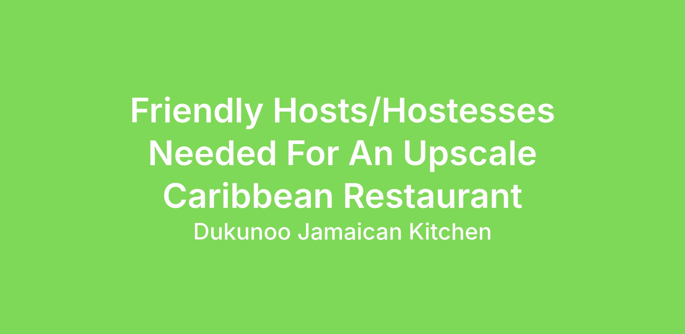 - Follow all policies and procedures consistent with the mission of Dukunoo Jamaican Kitchen.