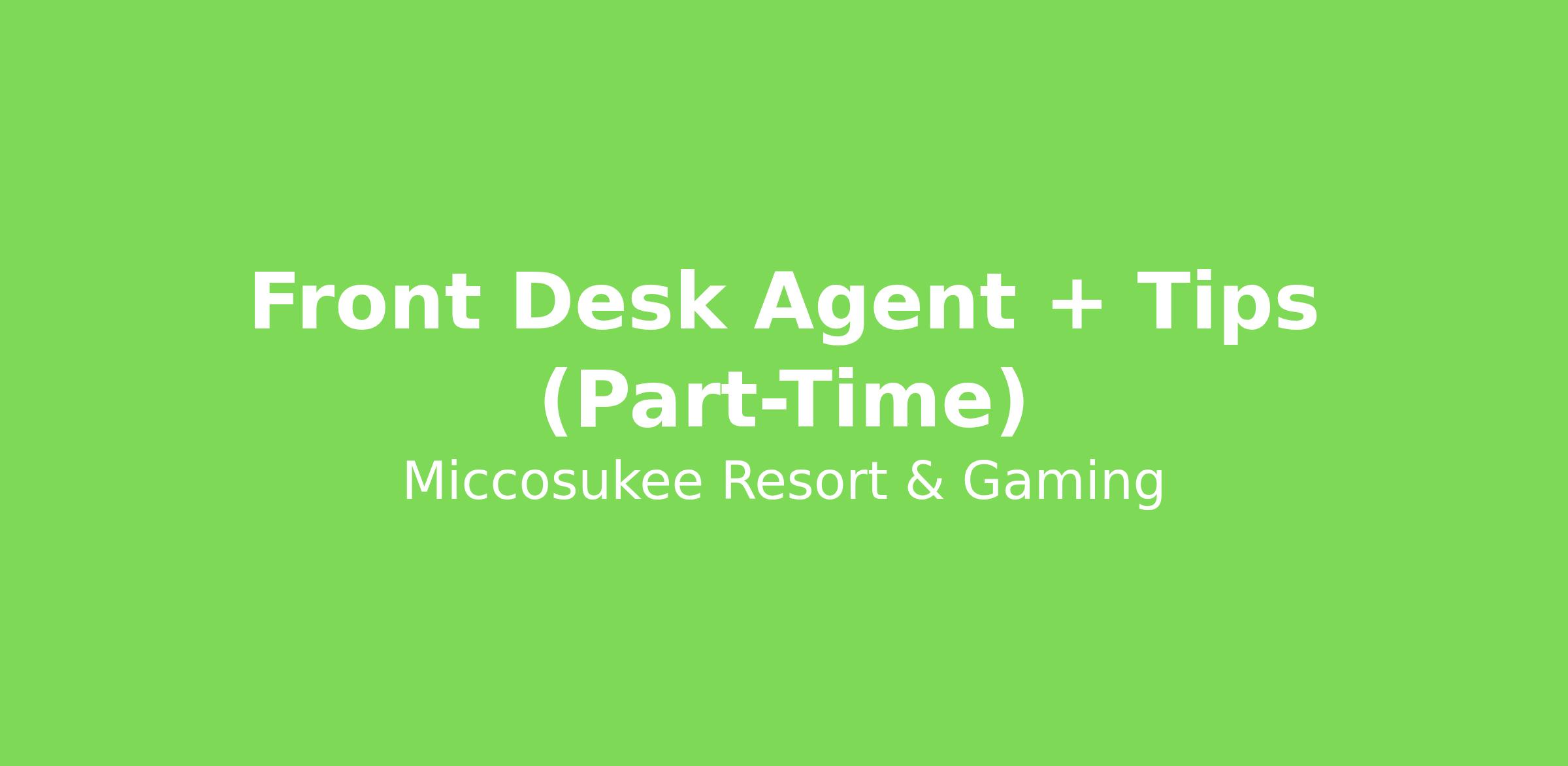 We are looking for an experienced Front Desk Agent to join our team at Miccosukee Casino & Resort. As a valued team member, we are committed to delivering a memorable, impressive, caring, committed and original experience for our guests, our team members, and community. We uphold this commitment by providing a safe and enjoyable workplace where YOU are our number one priority. It is the MICCO way.