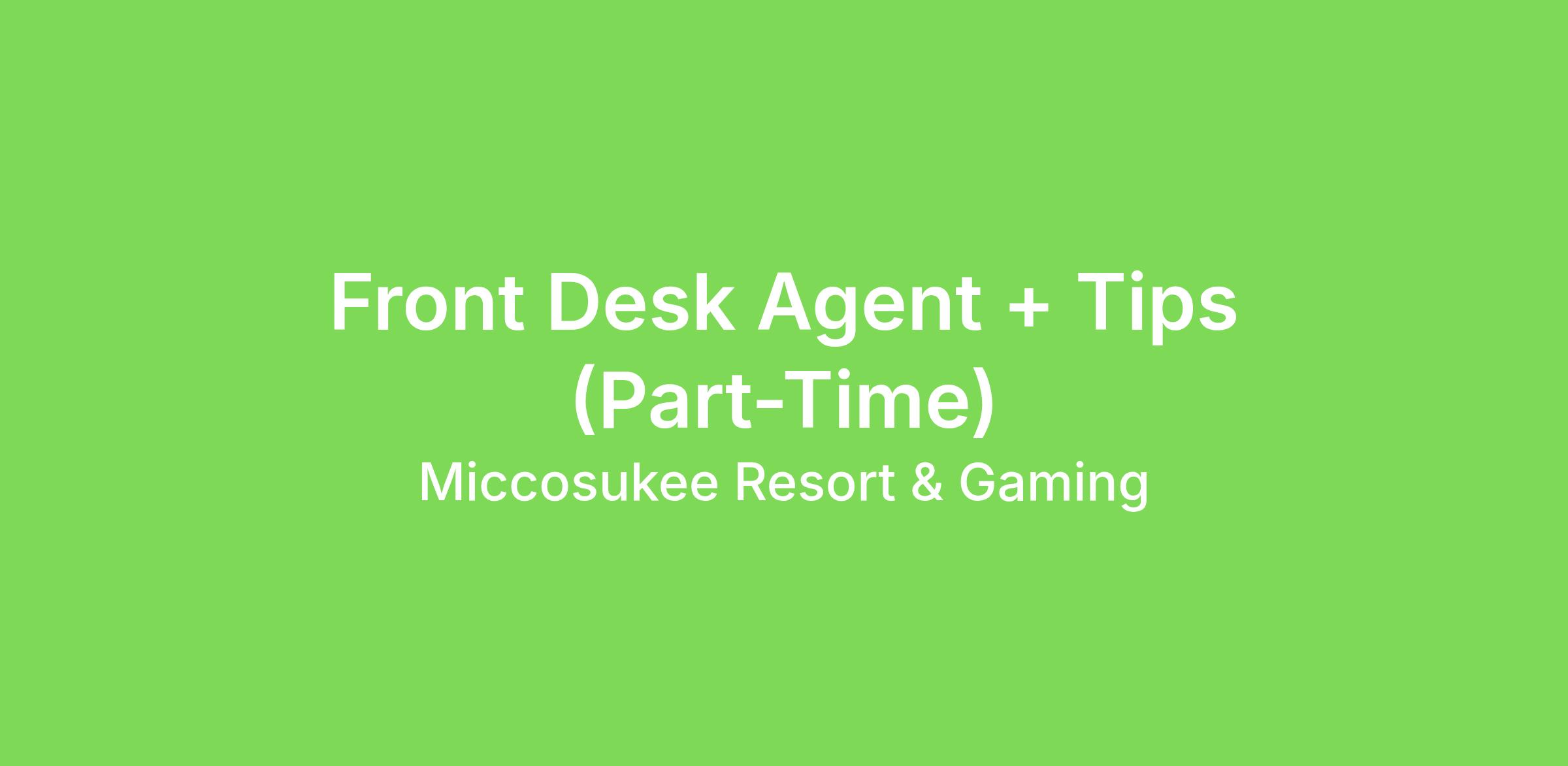 We are looking for an experienced Front Desk Agent to join our team at Miccosukee Casino & Resort. As a valued team member, we are committed to delivering a memorable, impressive, caring, committed and original experience for our guests, our team members, and community. We uphold this commitment by providing a safe and enjoyable workplace where YOU are our number one priority. It is the MICCO way.