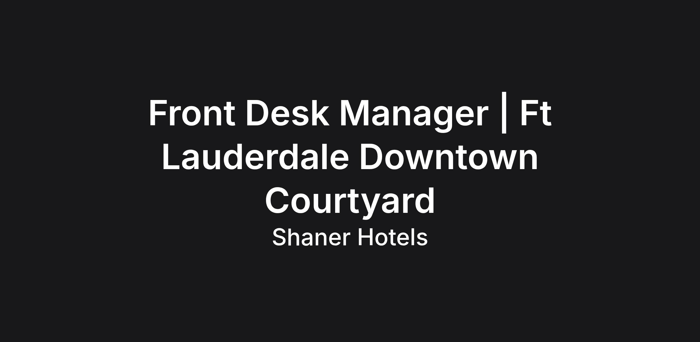 Front Desk Manager | Ft Lauderdale Downtown Courtyard