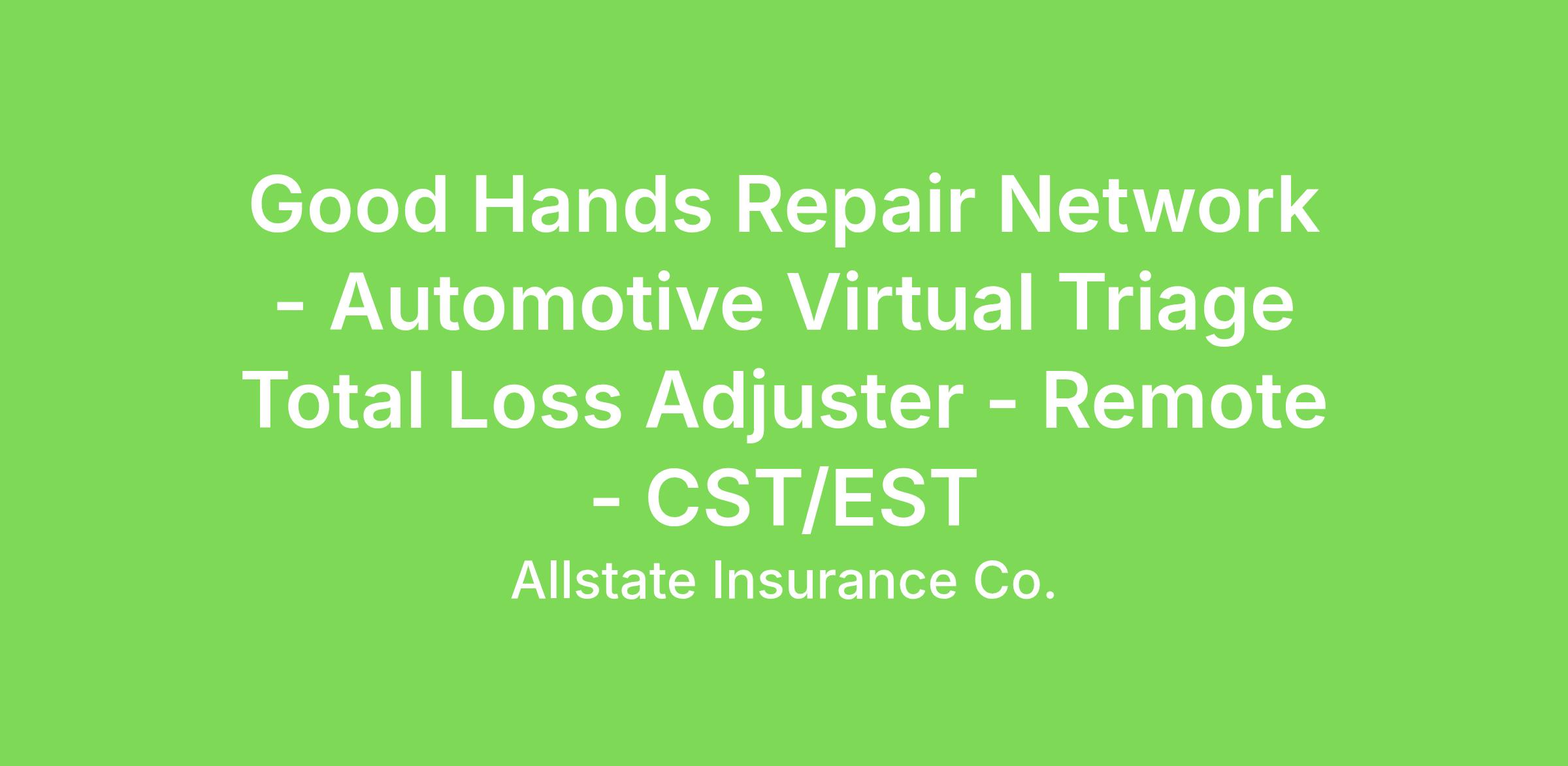 As an Automotive Virtual Total Loss Adjuster you will be responsible for providing a superior level of customer service and attention to customers who have a vehicle that needs repaired. The individual virtually inspects damage to a vehicle (which may include automobiles, motorcycles, all-terrain vehicles and recreational vehicles), writes damage repair estimates, completes total loss valuations and negotiates moderately complex and occasionally complex settlements with repair facilities, tow yards, customers, and estimates repair times for rental/loss of use. The individual works independently, prioritizes the individual's own responsibilities, and manages the individual's own workload and is responsible for explaining coverage, estimates, claims, settlement, and rental processes to agents and/or customers. The ideal candidate will need to have a minimum of 18 months or more experience writing Auto collision estimates using an auto estimating program such as: CCC One / Mitchel, Audatex.Key Responsibilities: