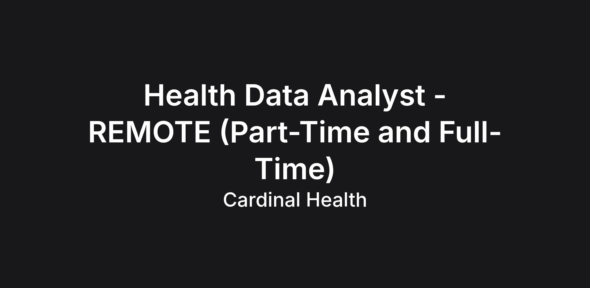 We are seeking a detail-oriented and analytical Health Data Analyst to collect, process, and interpret healthcare data to support clinical, operational, and business decision-making. This is a fully remote position with both part-time and full-time opportunities available.