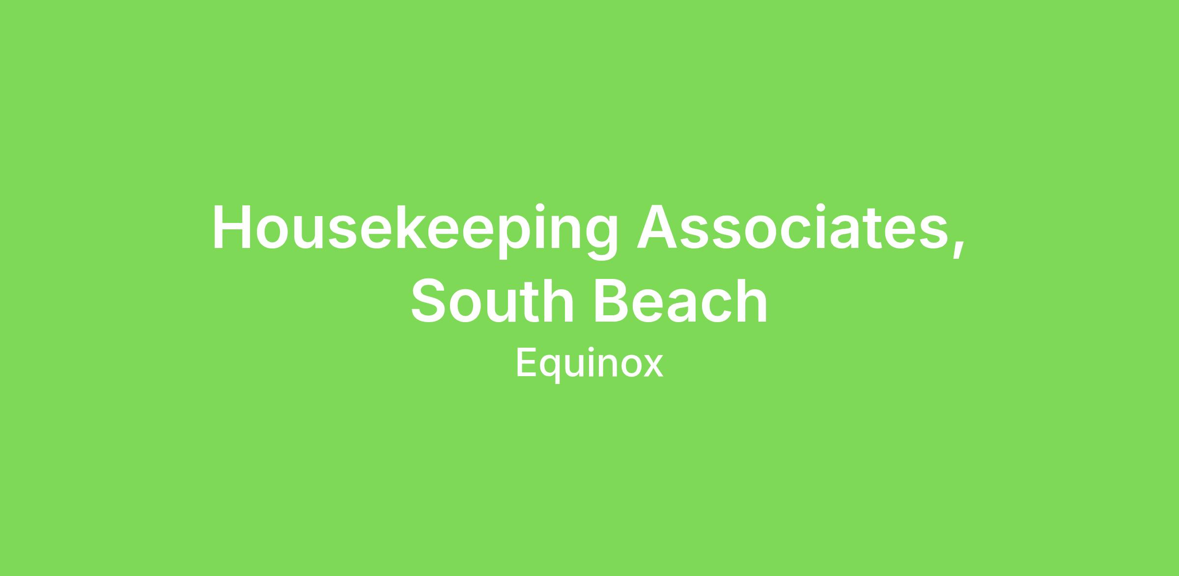 We are looking for energetic and enthusiastic Housekeeping Associates to join the Equinox team. This is a great position for a candidate looking to make a significant impact in a growing and dynamic organization based in a state-of-the-art, luxury facility in South Beach, FL.