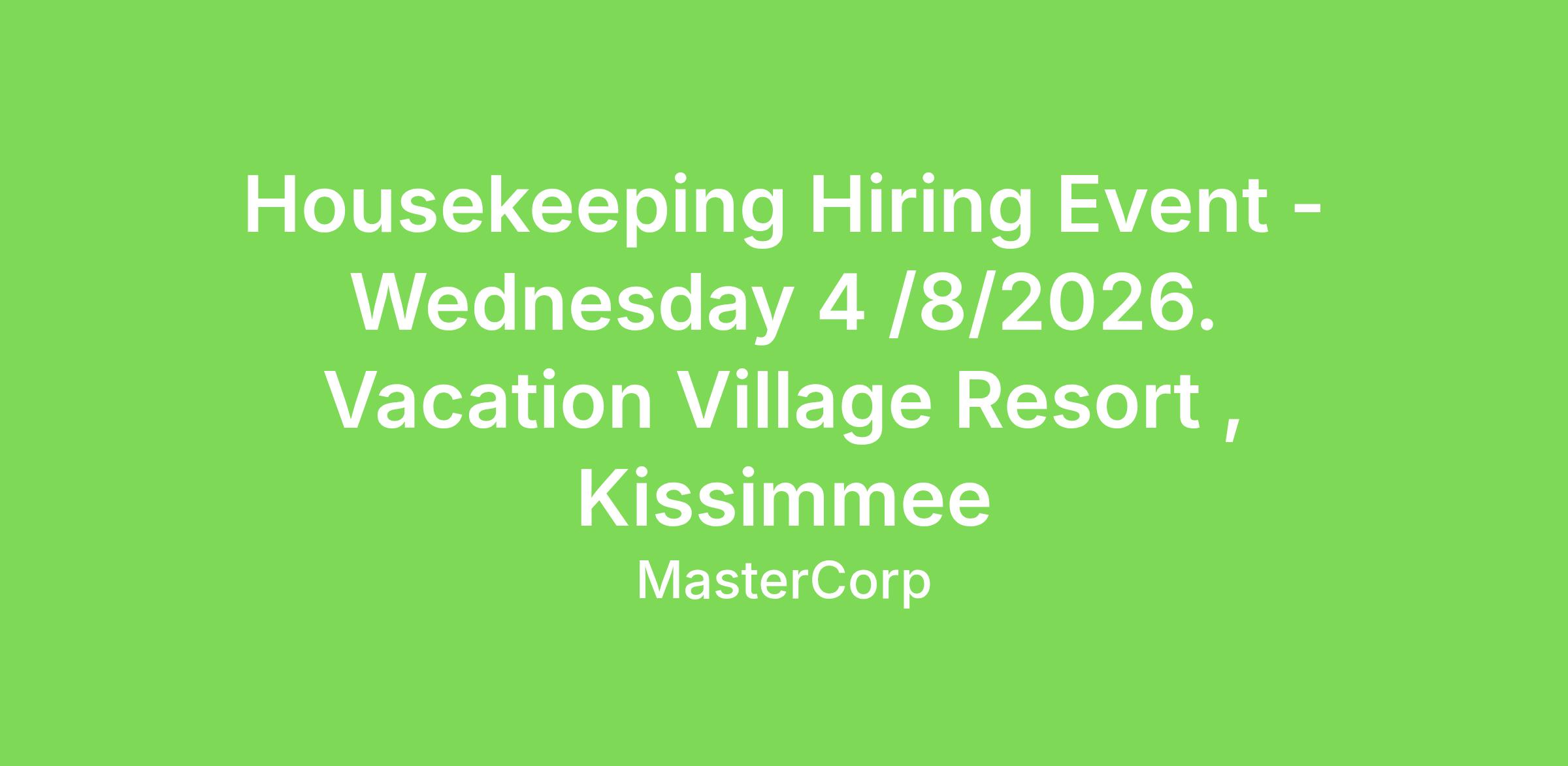 MasterCorp is Hiring Housekeepers – Join Us in Vacation Village Resort in Kissimmee!!