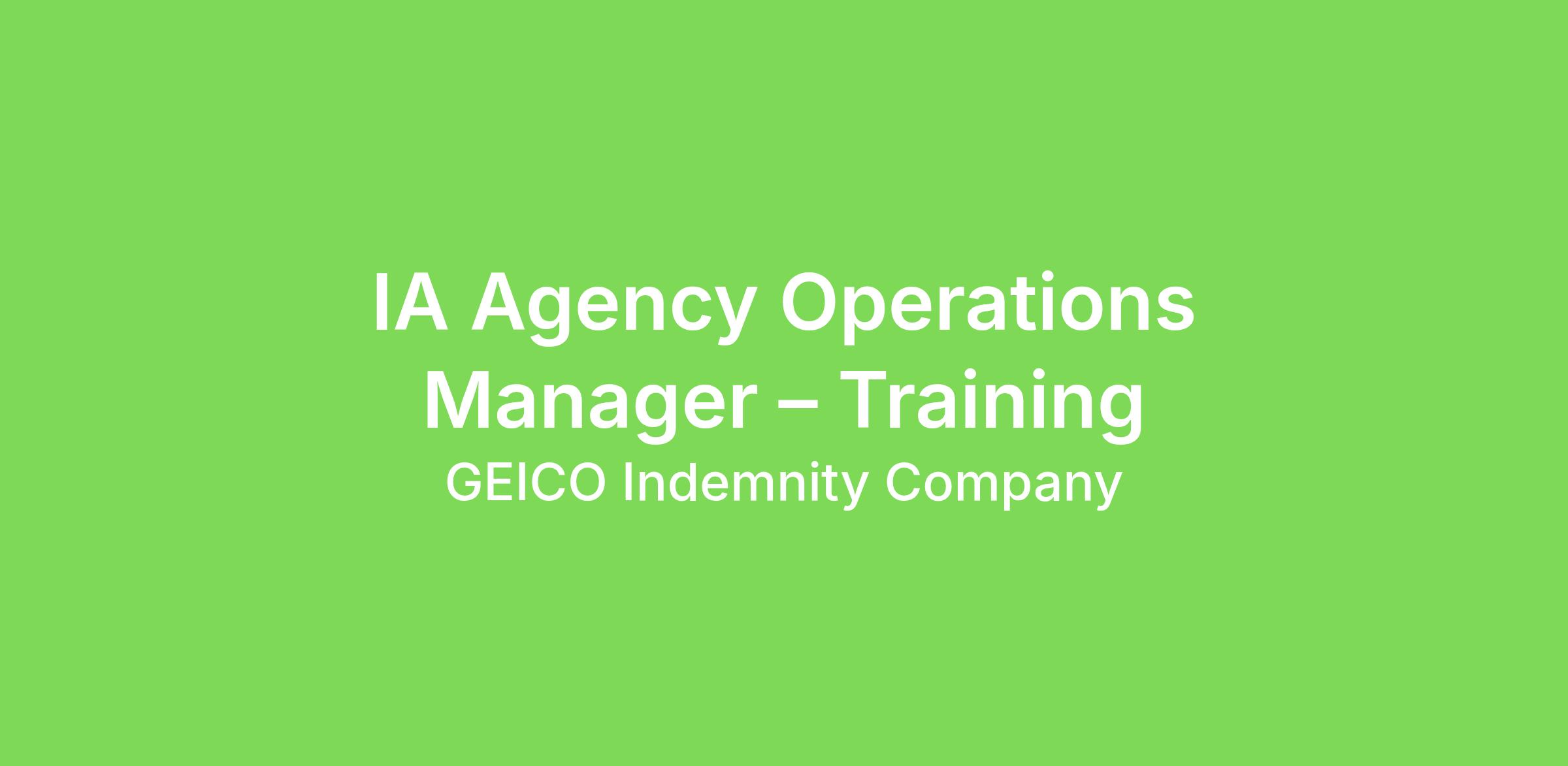 We are seeking an IA Agency Operations Manager - Training to be responsible for implementing a Learning Management system for the independent agent channel. Additionally, the AOM - Training will be responsible for coordinating training prioritization efforts across IA Sales, IA Communications, CW Learning, State PM and other relevant stakeholders.