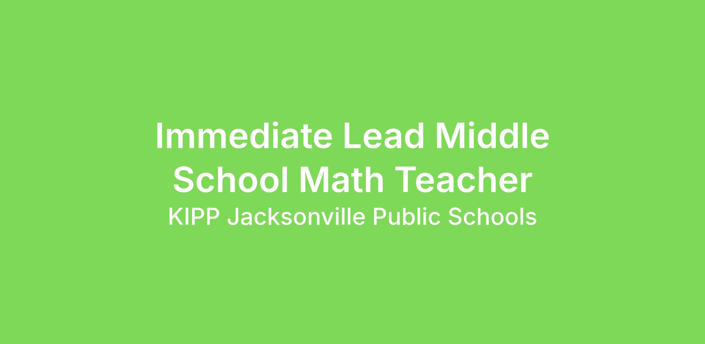 KIPP Jacksonville Public Schools seeks middle school teachers for our fifth through eighth grade classrooms in the 2025-26 school year. Teachers are assigned one grade level and are responsible for creating a positive classroom environment, implementing curriculum, assessing students, collaborating with their team, building relationships with families, and other duties as assigned. Full teacher responsibilities are ultimately outlined by their Principal.