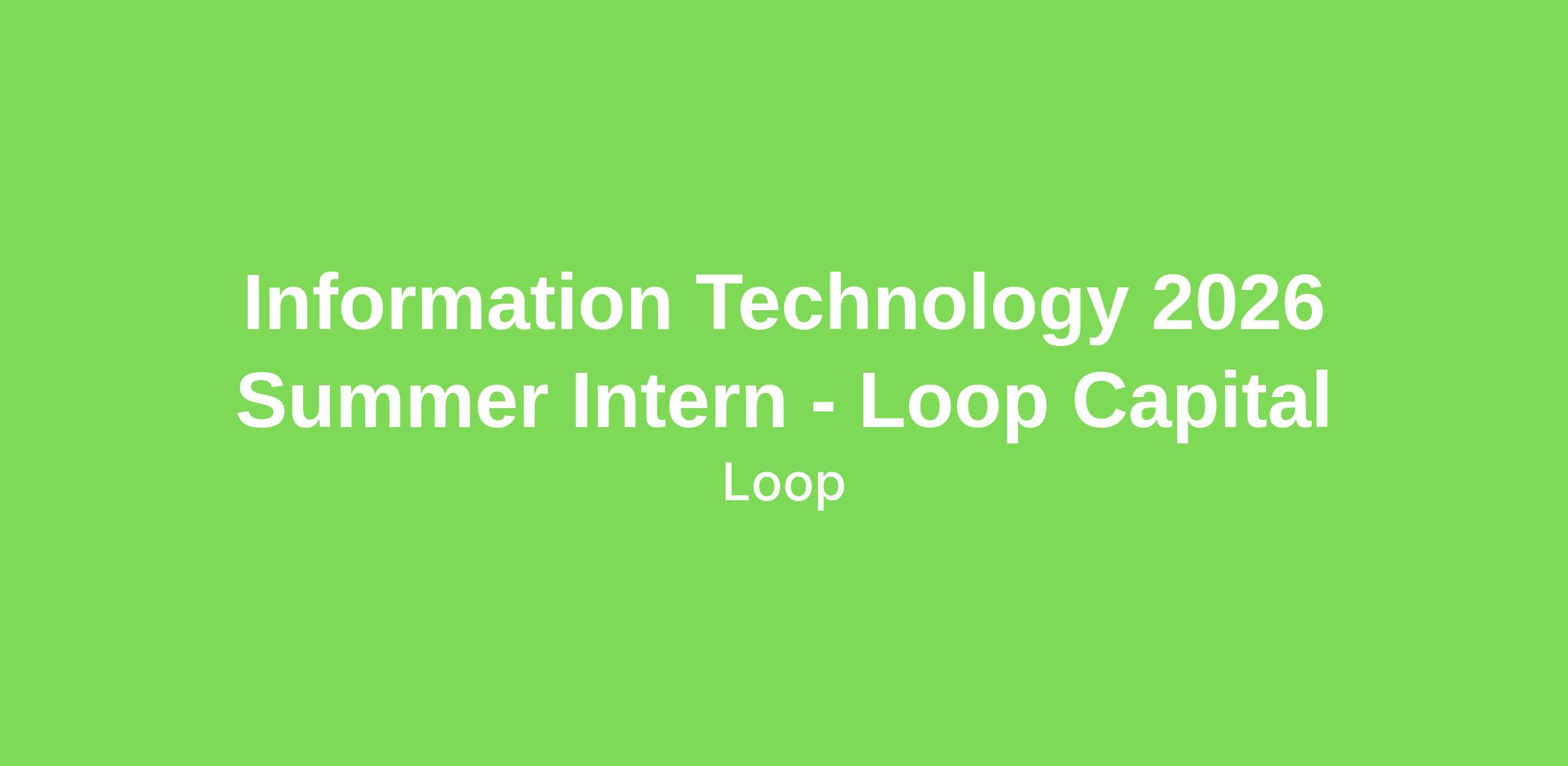 Loop Capital's Information Technology department seeks a summer intern to assist with the IT help desk and provide technical support in hardware and software installation and maintenance, use excellent customer service to troubleshoot and resolve desk support phone calls and use technical acumen to provide support for smart phone devices and PC applications, among other duties.