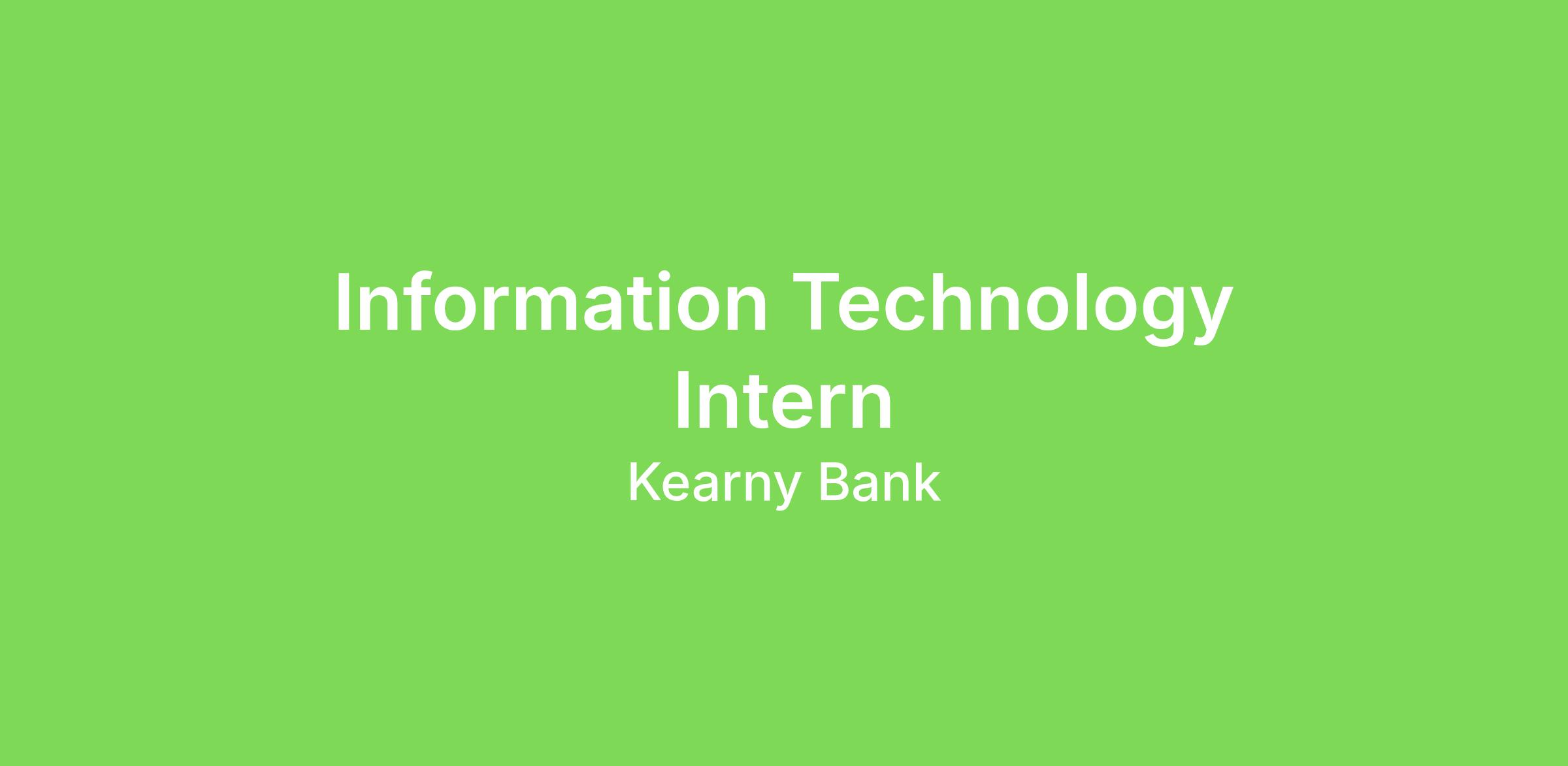 Position Summary: Kearny Bank’s summer internship provides hands-on experience across core IT operational domains and a capstone project that delivers real value to the business. Interns rotate through IT Service Desk, Information Security Operations, Enterprise Architecture, and Enterprise Networking—spending one week embedded with each team—then focus on a special project under the guidance of the Director of IT.