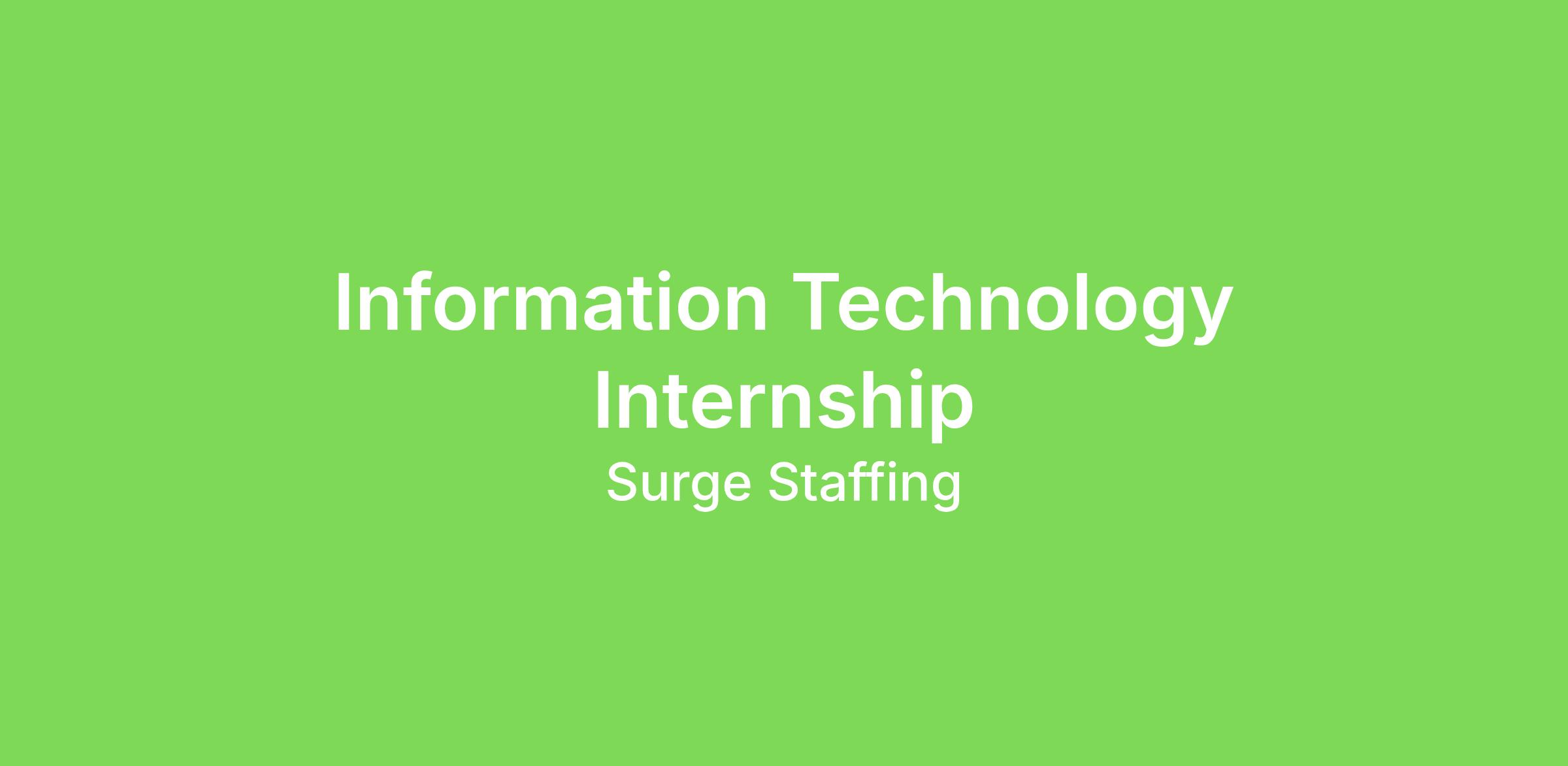 The IT Intern will be responsible for supporting the IT Department in a variety of ways for Surge Staffing. They will have the opportunity to gain first-hand experience in all areas of IT and learn how they all play a big role in a growing organization. This includes but does not limit to working closely with our departments and/or positions in Technical Support, Systems Administrator, Asset Manager, and Deployment Coordinator.