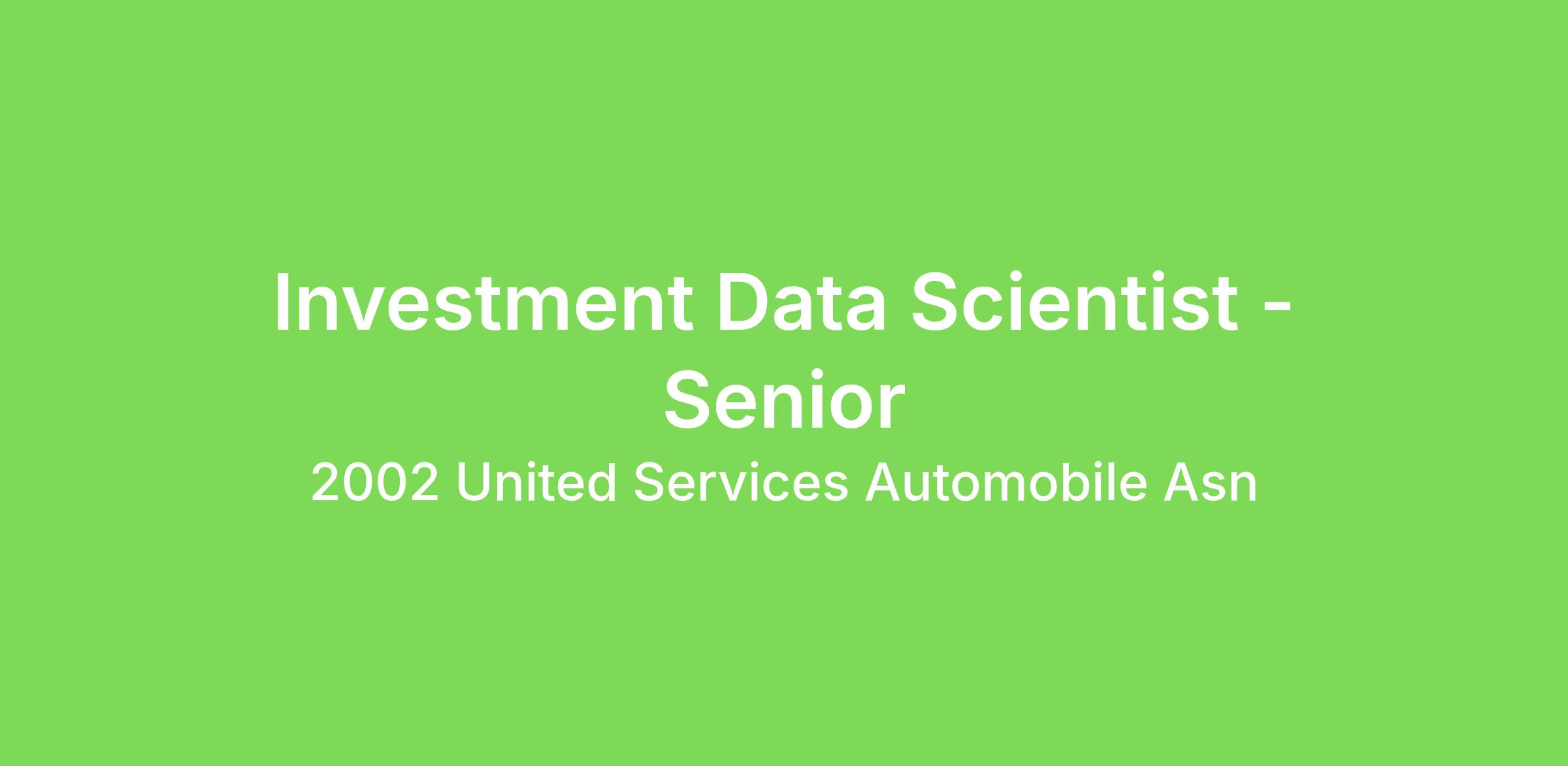As a dedicated Investment Data Scientist - Senior, you will work with the Data Science Team in USAA’s Finance department. Their responsibilities will include working with investment risk models (Valuation, Performance Attribution, VaR, CECL), investment data management, external asset manager relations, and investment operational risk & processes. Additionally, they will support USAA’s Chief Investment Office with investment analysis.