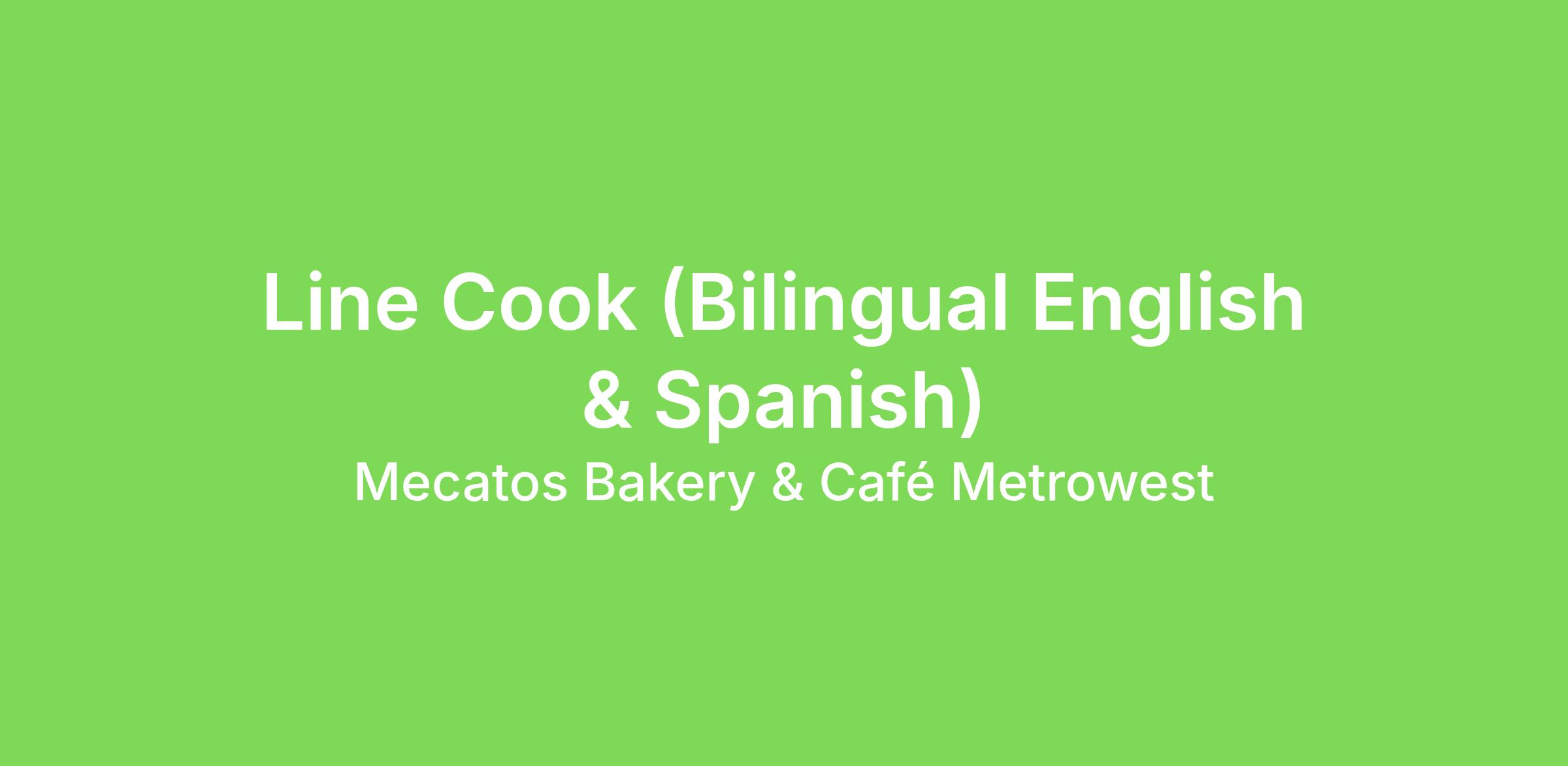 Mecatos Bakery & Cafe in Orlando, FL is looking Full timeline cook to join our talented team. We are located in Metrowest, Orlando area (2900 S Kirkman Rd.). Our ideal candidate is a self-starter, motivated, able to work alone and multi-task as well as reliable. Weekend availability a must.