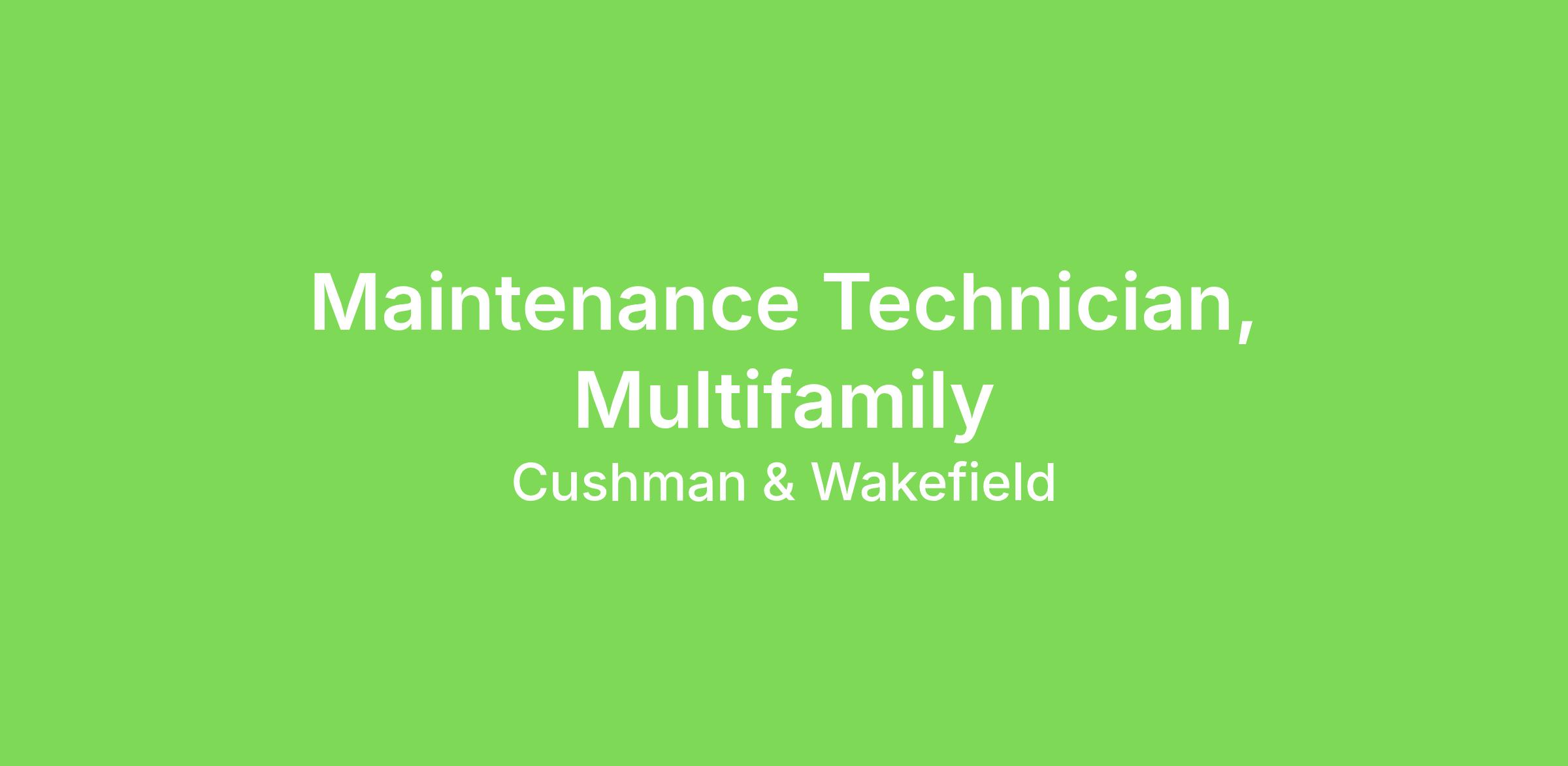 Maintenance Technician, Multifamily