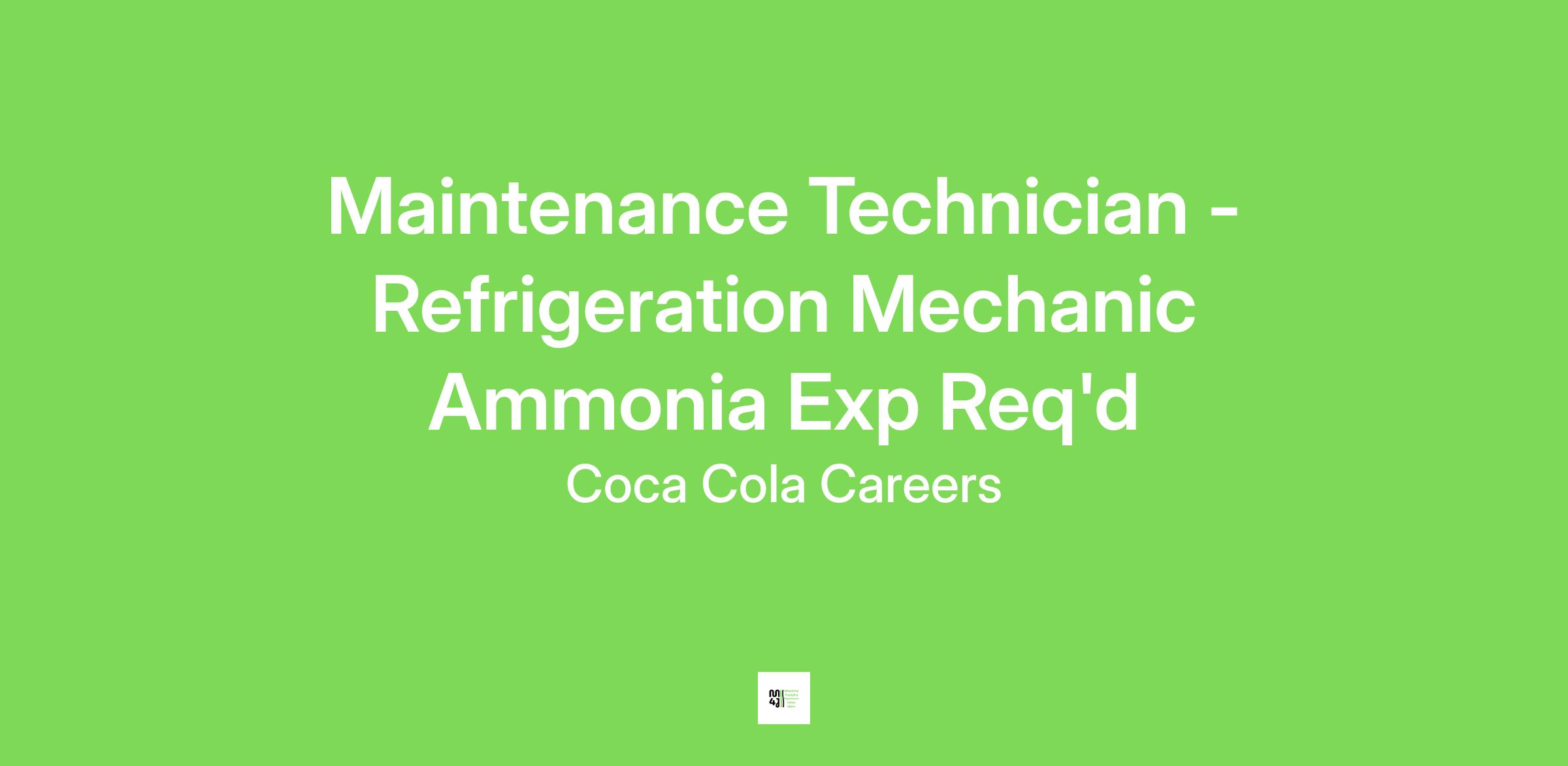 At The Coca-Cola Company every person can create a long and successful career. The Refrigeration Maintenance Technician II operates and maintains plant facility equipment including boilers, refrigeration (anhydrous ammonia), water filtration, air compressors, electrical systems, piping systems, and hydraulics. Direct and track contractor needs, and activities as directed by management. Perform all tasks in a safe manner to ensure achievement of Quality, Service, and Cost objectives. Comply with all standard operating procedures and requirements under TCCC (The Coca-Cola Company) Quality System, and with all regulations (local to federal). This work is performed in a manufacturing plant. Work involves exposure to temperature extremes, high noise levels, wetness, heights, dust, moving equipment, vibrations, and vapors.