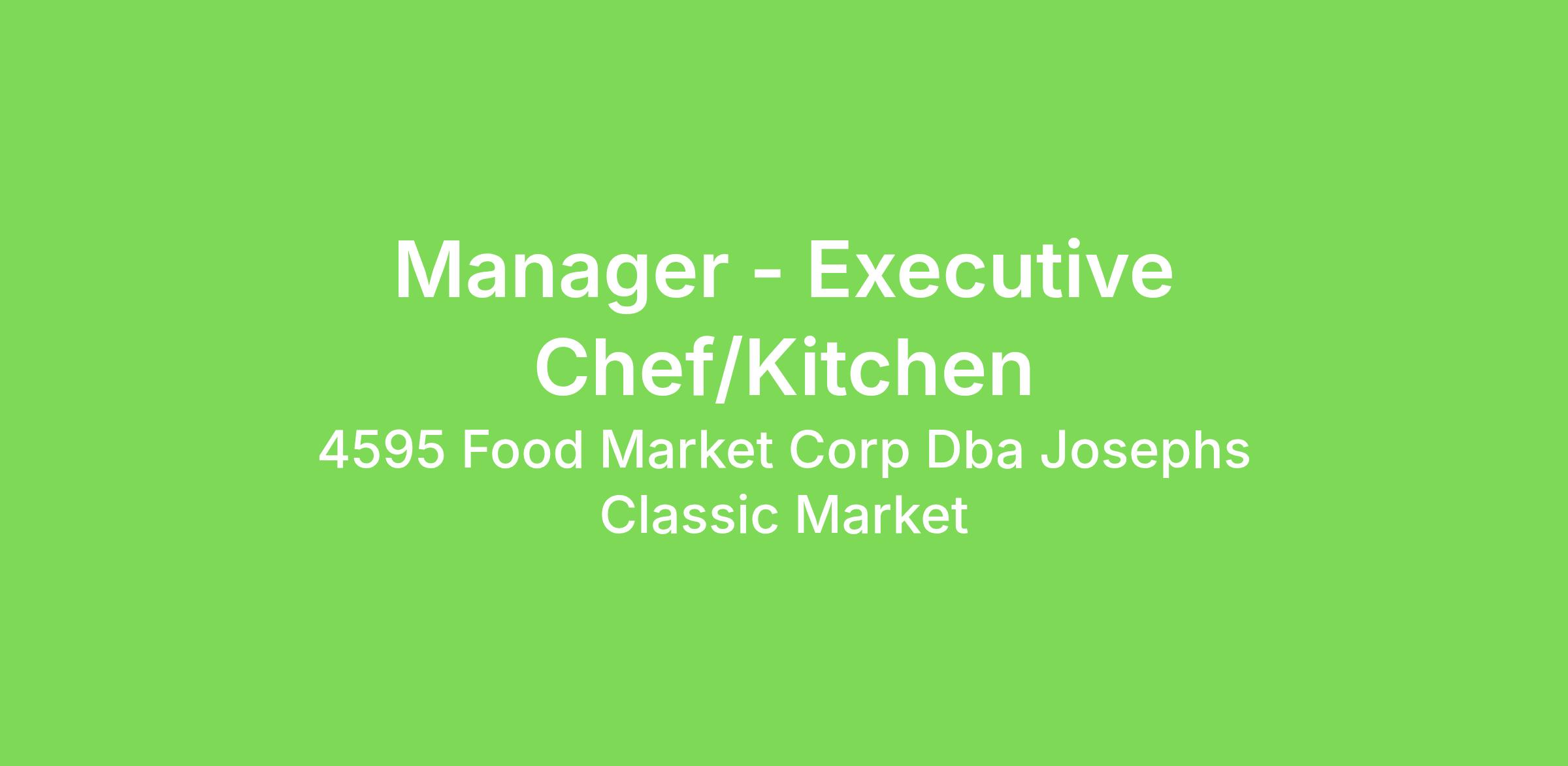 At Joseph’s Classic Market, we believe in growing leaders from within. As Executive Chef / Kitchen Manager, you’ll have the opportunity to shape menus, develop culinary talent, and drive operational excellence. You’ll expand your leadership skills in food cost control, labor management, production planning, and multi-department collaboration. Many of our leaders grow within the company, and we value those who bring both structure and creativity to their role.