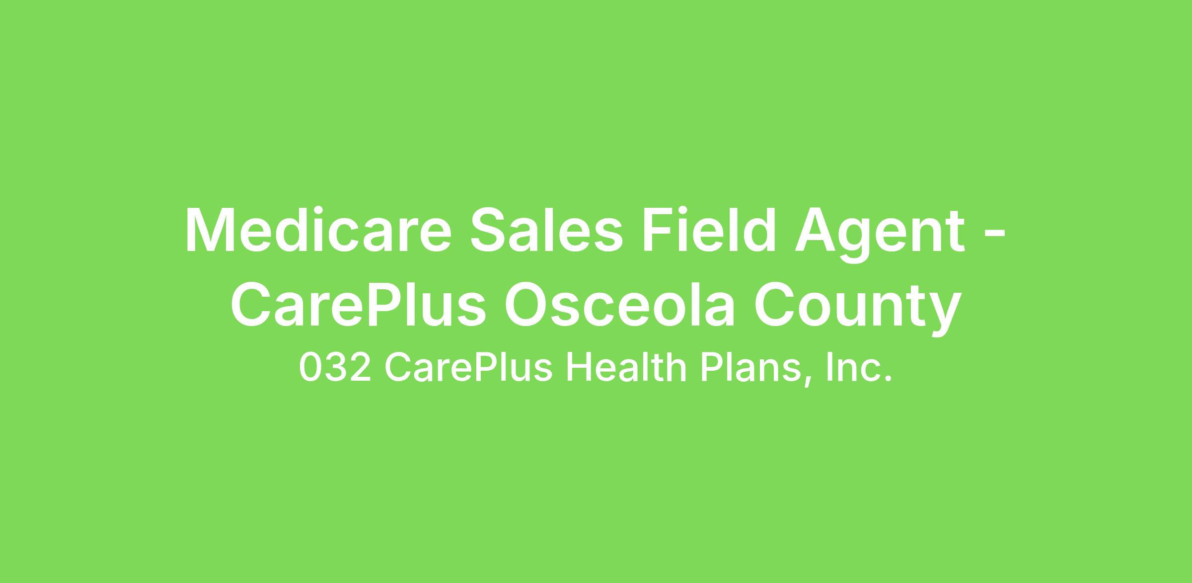 Become a part of our caring community and help us put health first With over 10 million sales interactions annually, Humana understands that while great products are important, it’s the quality of our service that truly defines us. We know that when our members and prospects have delightful and memorable experiences, it strengthens their connection with us and enables us to put their Health First. After all, a health services company that has multiple ways to improve the lives of its customers is uniquely positioned to put those customers at the center of everything it does. The MarketPoint Career Channel Team is looking for accomplished Medicare Field Sales Agents. This is a field-based role, and you must live in the designated territory to serve their local community. As part of a collaborative team of 8–12 Medicare Sales Agents, you'll work under the guidance of a Senior Manager and Regional Director who are committed to your success. Together, you'll help bring Humana's strategy to life: Deliver on the fundamentals, differentiate through exceptional service, and grow by expanding our reach and influence. What You'll Do in This FIELD-based Role: Deliver: Build trust and educate individuals on Humana's Medicare Advantage plans and additional offerings like Life, Dental, Vision, and Prescription coverage. Differentiate: Create meaningful, face-to-face connections through grassroots marketing, community events, and in-home visits—providing a personalized experience that sets Humana apart. Grow: Drive self-generated sales, meet performance goals, and expand Humana's presence in the market by becoming a valued resource and building relationships in your community. Benefits include: Medical, Dental, Vision, and a variety of other supplemental insurances Paid Time Off (PTO) and Paid Holidays 401(k) retirement savings plan with a company match Tuition reimbursement and/or scholarships for qualifying dependent children Use your skills to make an impact Required Qualifications Active Health Insurance License required. Must reside in Osceola County. Comfortable with daily face-to-face interactions in prospective members’ homes, at community-based events and engaging with the community through service, retail environment, organizations, volunteer work or local events. Valid state driver’s license and proof of personal vehicle liability insurance meeting at least 25/25/10 coverage limits (or higher, based on state requirements). Preferred Qualifications Active Life and Variable Annuity Insurance License. Background in selling Medicare products. Experience in public speaking or delivering presentations to groups. Background in supporting Value Based Care organizations. Familiarity with Salesforce or similar CRMs. Associate's or Bachelor's degree. Bilingual in English and Spanish, with the ability to speak, read, and write fluently in both languages. Additional Information Driving Statement: This role is part of our company's driver safety program and therefore requires an individual to have a valid state driver's license and are expected to maintain personal vehicle liability insurance. State driver's license is subject to driver license validation and MVR review. Individual must carry vehicle insurance in accordance with their residing state minimum required limits, or $25,000 bodily injury per person/$25,000 bodily injury per event /$10,000 for property damage or whichever is higher. Language Proficiency Assessment: Any Humana associate who speaks with a member in a language other than English must take a language proficiency assessment, provided by an outside vendor, to ensure competency. Applicants will be required to take the Interagency Language Rating (ILR) test as provided by the Federal Government. Schedule: Meeting with members requires appointments and/or event times that may vary on nights and weekends. Flexibility is essential to your success. Training: The first five weeks of employment and attendance is mandatory. Pay Range: The range below reflects a good faith estimate of total compensation for full time (40 hours per week) employment at the time of posting. This compensation package includes both base pay and commission with guarantee. The pay range may be higher or lower based on geographic location. Actual earnings will vary based on individual performance, with the base salary and commission structure aligned to company policies and applicable pay transparency requirements. $80,000 - $125,000 per year #medicaresalesrep Travel: While this is a remote position, occasional travel to Humana's offices for training or meetings may be required. Scheduled Weekly Hours 40 About us About CarePlus Health Plans: CarePlus Health Plans is a recognized leader in healthcare delivery that has been offering Medicare Advantage health plans in Florida over 23 years. CarePlus strives to help people with Medicare, or both Medicare and Medicaid, achieve their best possible health and wellness through plans with benefits and services they care about. As a wholly owned subsidiary of Humana, CarePlus currently serves Medicare beneficiaries throughout 21 Florida counties. About Humana: Humana Inc. (NYSE: HUM) is committed to putting health first – for our teammates, our customers, and our company. Through our Humana insurance services, and our CenterWell healthcare services, we make it easier for the millions of people we serve to achieve their best health – delivering the care and service they need, when they need it. These efforts are leading to a better quality of life for people with Medicare, Medicaid, families, individuals, military service personnel, and communities at large. Equal Opportunity Employer It is the policy of Humana not to discriminate against any employee or applicant for employment because of race, color, religion, sex, sexual orientation, gender identity, national origin, age, marital status, genetic information, disability or protected veteran status. It is also the 