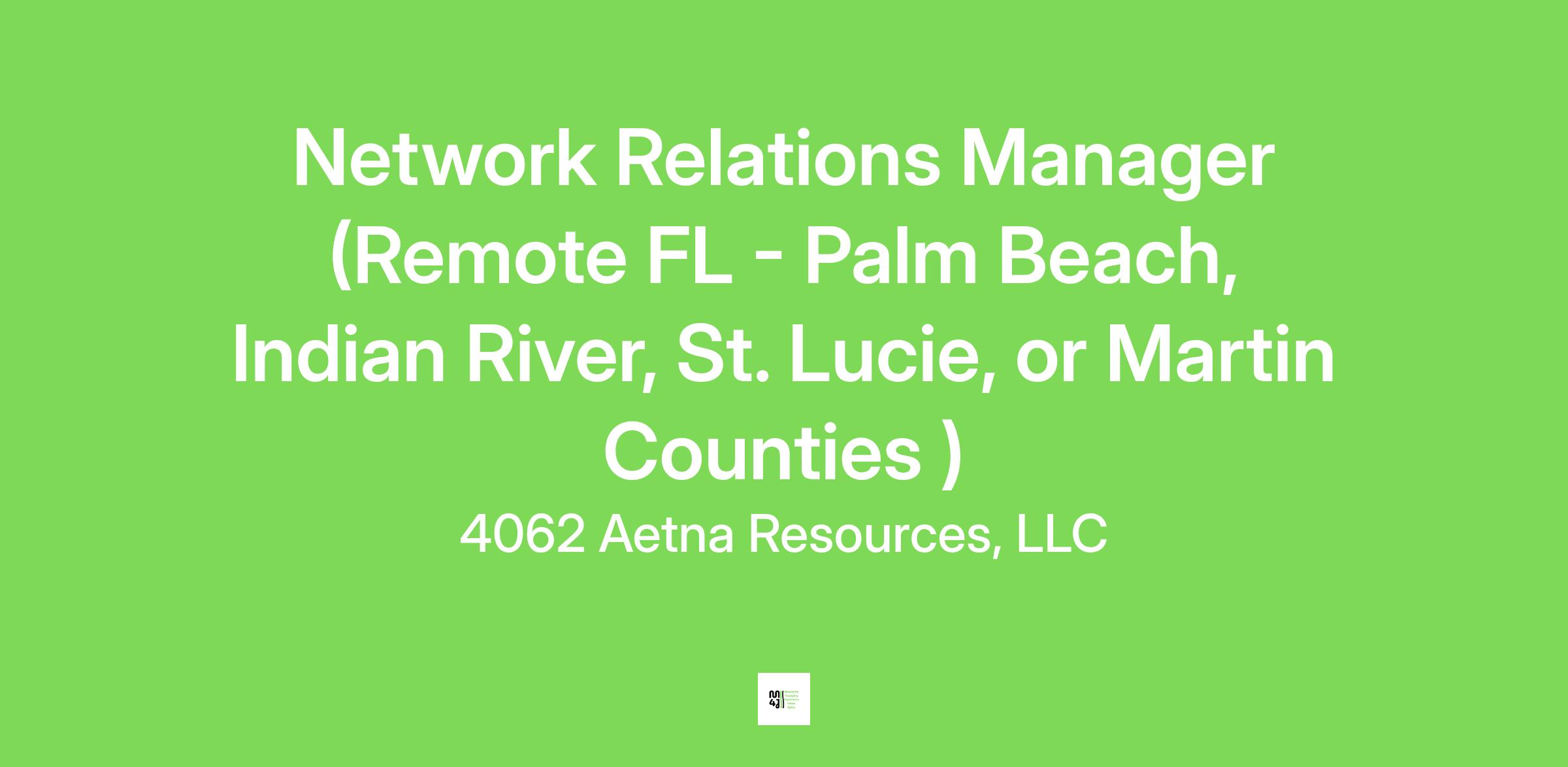 Network Relations Manager (Remote FL - Palm Beach, Indian River, St. Lucie, or Martin Counties )