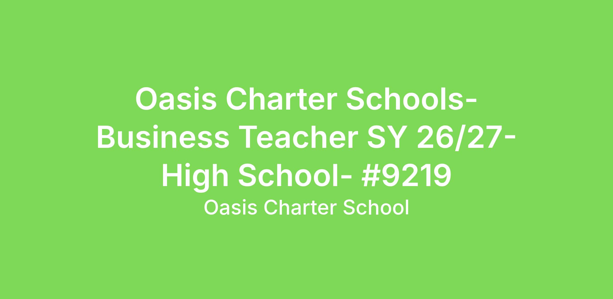 Oasis Charter Schools- Business Teacher SY 26/27- High School- #9219