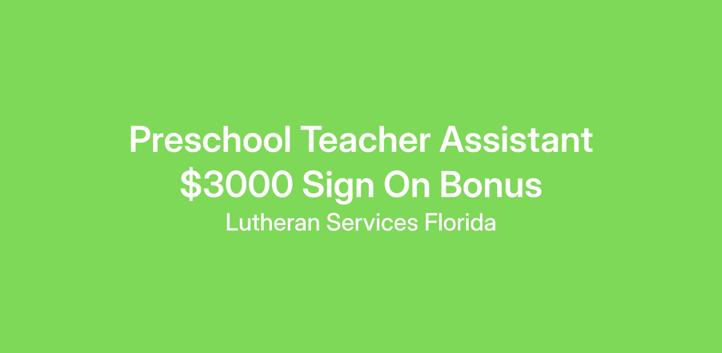 Preschool Teacher Assistant $3000 Sign On Bonus